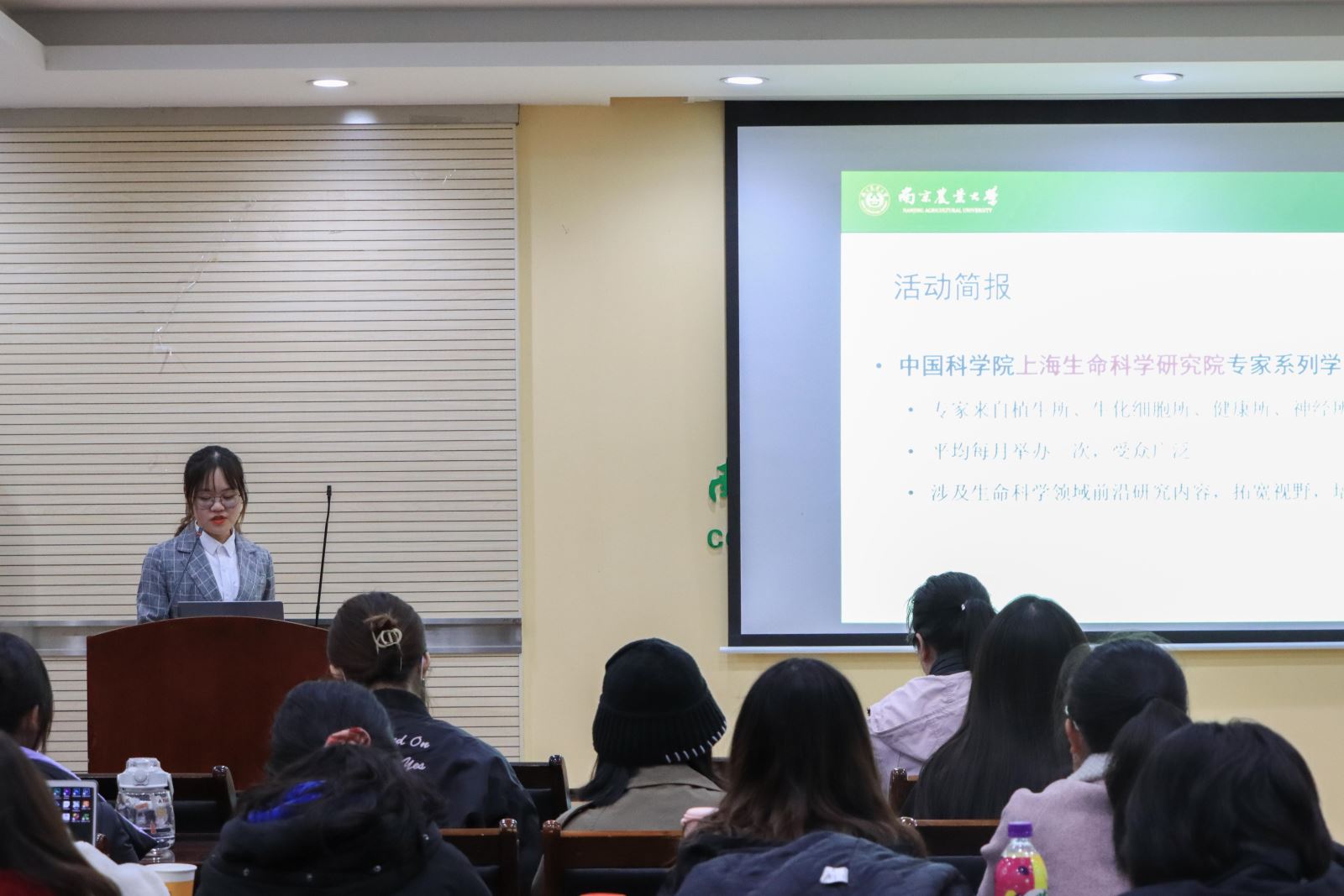 李姝涵对这一年来菁英班举办的活动进行了回顾,包括开展中国科学院上海生命科学研究院专家系列报告;第七届菁英班成员前往上海进行实习并开展新老生交流会;举办第八届新生见面会;植生所专家莅临我校参加菁英班成果交流会;菁英班学生代表参加金埔园林实践教学基地揭牌仪式等。一年来菁英班取得的成就颇丰,如部分成员参加生命科学竞赛并获一二等奖;陈天欣团队参加“我用英语将我秾”演讲比赛获一等奖等。近年来,菁英班成员持续保持极高的升学率和一流的升学质量,体现了我院菁英班教学所取得的优异成效。