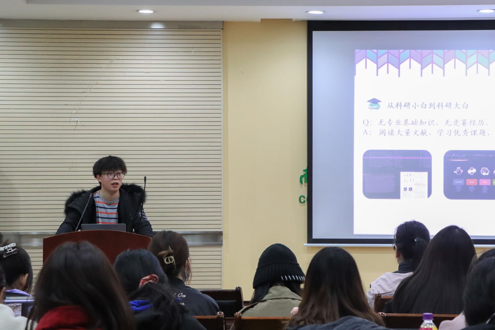石国龙基于自身丰富的科研与竞赛经历,与大家进行了学习经验分享。他针对大二、大三同学科研能力薄弱、竞赛经历少、背景知识了解不多等情况,提出了广泛阅读文献、学习优秀课题、多走进实验室等建议。他还强调了重视基础、主动创新与理论用于实践的重要性。