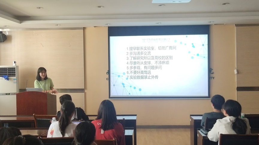 在本次实习经验分享过程中,首先由许珂学长为大家介绍有关植生所相关情况,详细介绍了如何选择实习导师。并提醒大家要做好实验记录、完成每日打卡