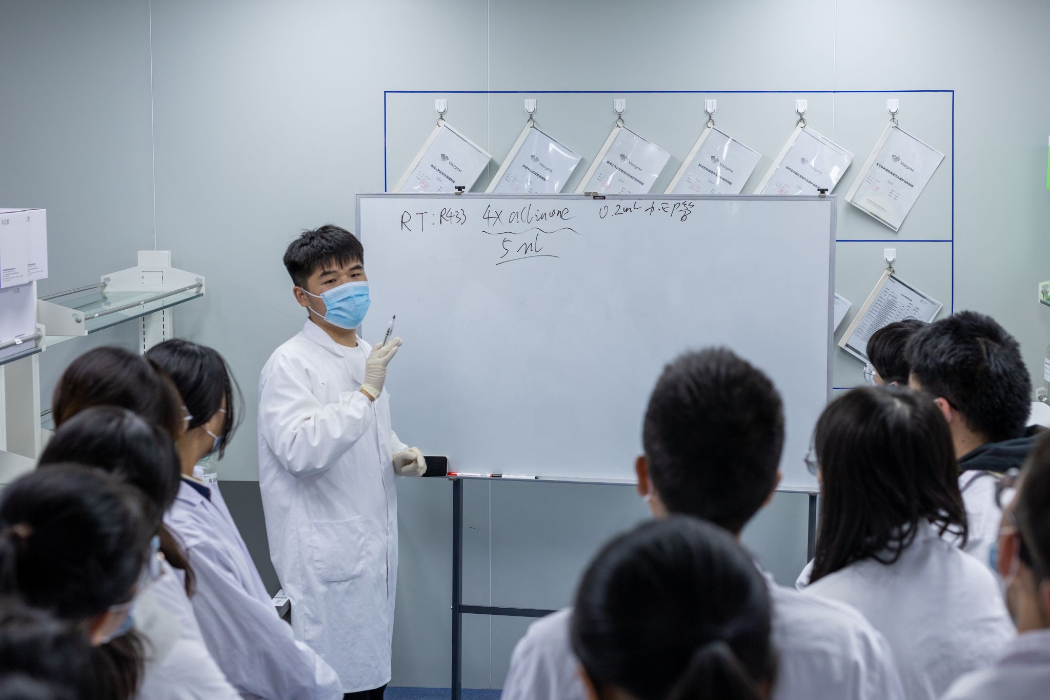上午,同学们首先在实验室进行了RNA提取相关技术培训,工程师详细讲解了RNA提取与逆转录的实验原理及关键步骤,强调了操作中需注意的规范与细节。同学们在工程师的指导下,分组进行了总RNA提取,并对样品浓度及质量进行检测。在实验过程中,大家通过操作精密实验仪器,如OneDrop,学习并掌握了RNA实验中的基本技能。