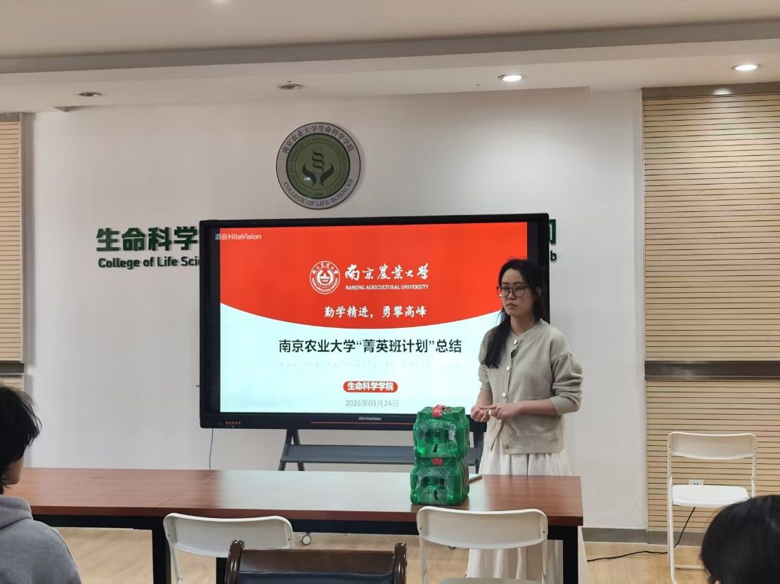 为系统总结上学年菁英班各项培养活动成果,明确暑期赴上海中科院实习相关安排,解答同学们的疑问,3月25日周三下午2:30,生科院25级菁英班主题班会于生科楼E2004顺利开展。本次班会由25级菁英班负责人关润钰主持,全体25级菁英班学员参与本次活动。
