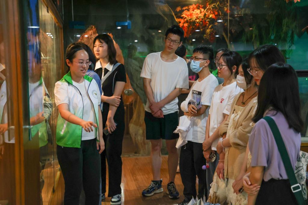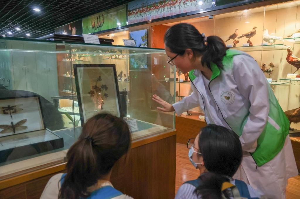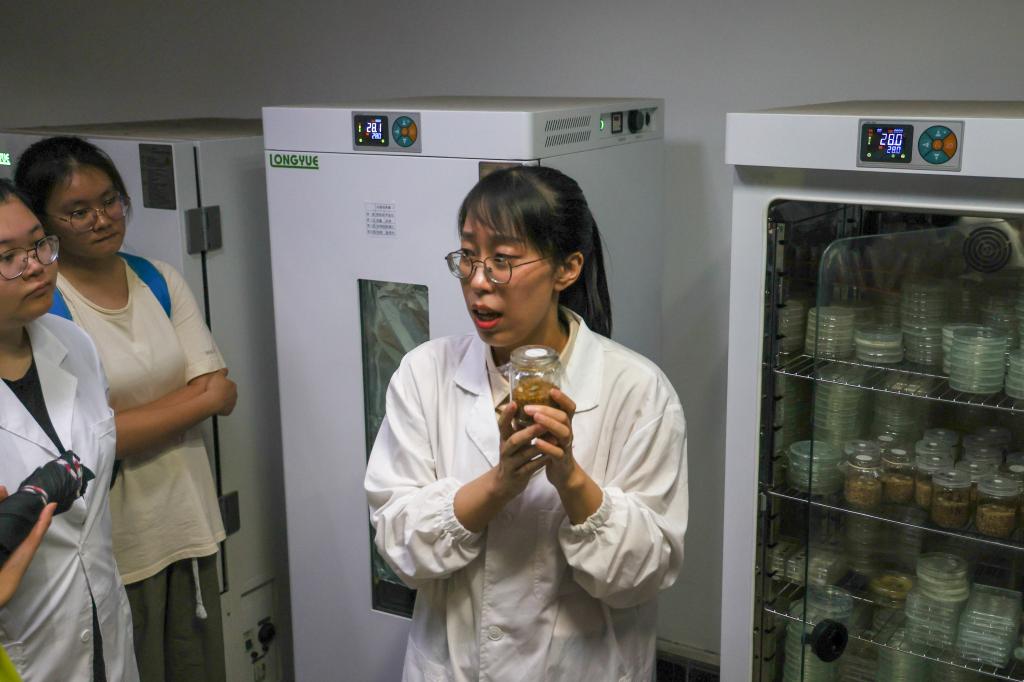 下午2点,此次活动来到了朱静老师的办公室。老师对大型食用真菌进行了初步的介绍与讲解;,接着同学们到实验室参观真菌,观察真菌形态特征与培养环境,了解与真菌有关的科研项目。随后在动物标本馆,讲解员们为同学们带来了一场生动有趣的动物科普课程。他们先向同学们讲解了各种动物的生存环境和习性,引导大家对动物的生态环境有了更深刻的认识。讲解员们带领着同学们依次参观了各类动物标本,生动地介绍了这些动物的各项特征和习性。最后来到李周坤老师的实验室,老师对黏细菌和塑料降解环境保护进行了更深入的探讨与分析,让同学们对此的认识更进一层细菌有了进一步了解,同时提升培养了他们对这方面知识的兴趣。