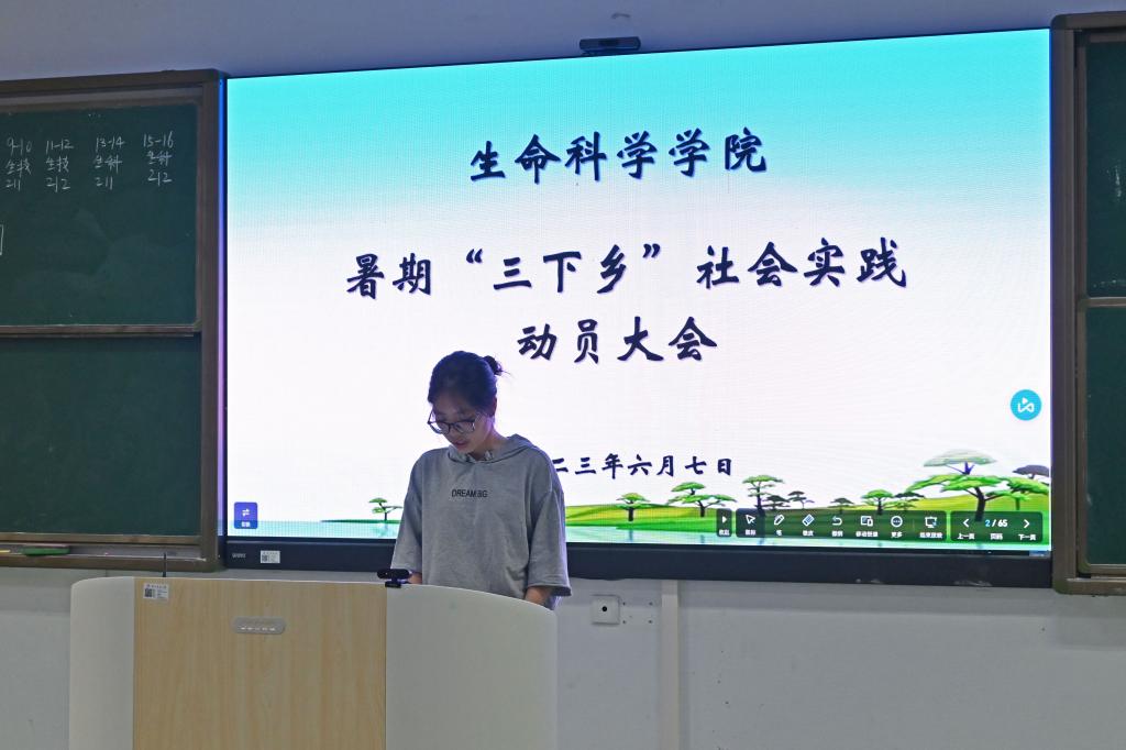 6月7日下午4时,生命科学学院暑期“三下乡”社会实践动员大会在主楼143顺利举行。会议由我院学生会主席团成员于浩程主持。辅导员王哲,团委副书记陈雨梦,以及我院全体大二学生参与了本次动员大会。