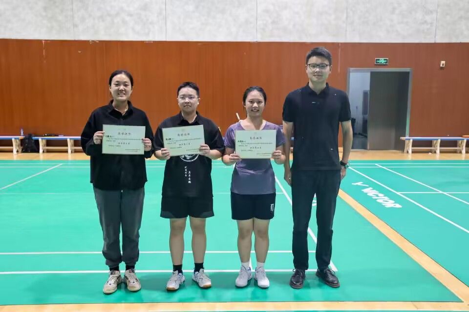 经过在小组赛和淘汰赛的激烈角逐,男子组李子昂、杨湛、张浩睿、张俊豪,女子组黄云镝、刘奕辰、许馨悦、周苏岚分别挺进四强。男子组张浩睿在与杨湛的四进二比赛中,凭借高超的球技赢下第一局,但消耗了过度的体力导致在之后的两局中发挥不稳定,最终惜败对手杨湛,无缘冠亚军。而李子昂作为生科院羽毛球队队长,经验丰富、体力充沛,招数更是层出不穷,以连胜的姿态夺得桂冠。与此同时,女子组黄云镝势如破竹,一举拿下女子组冠军,可谓巾帼不让须眉。