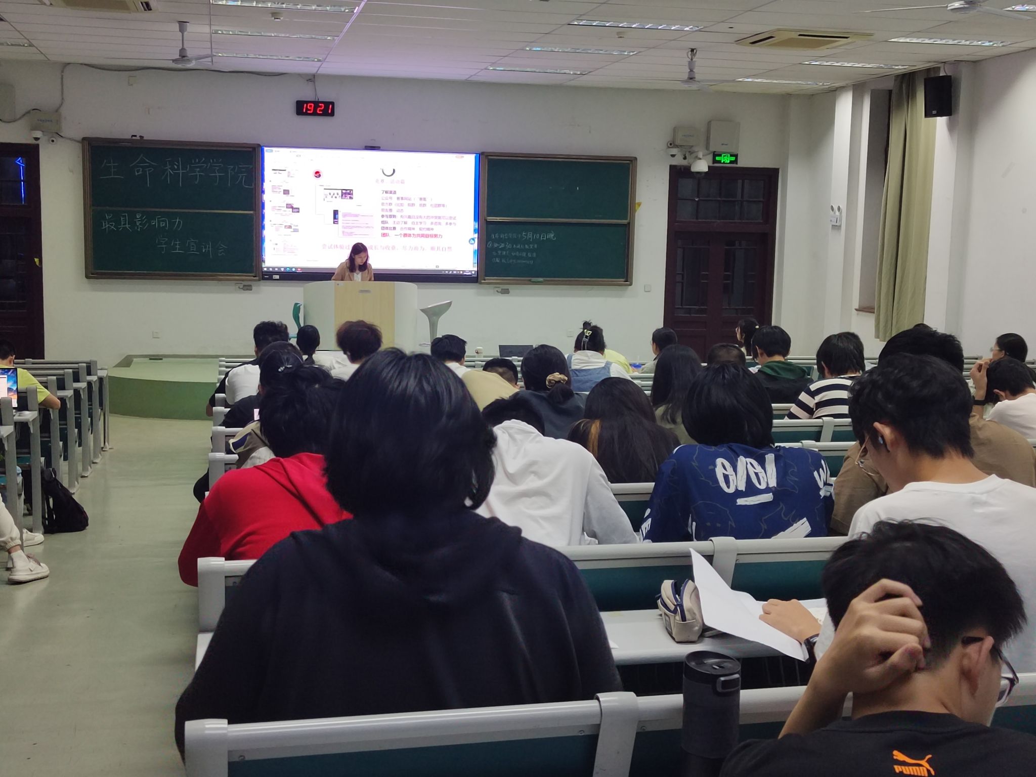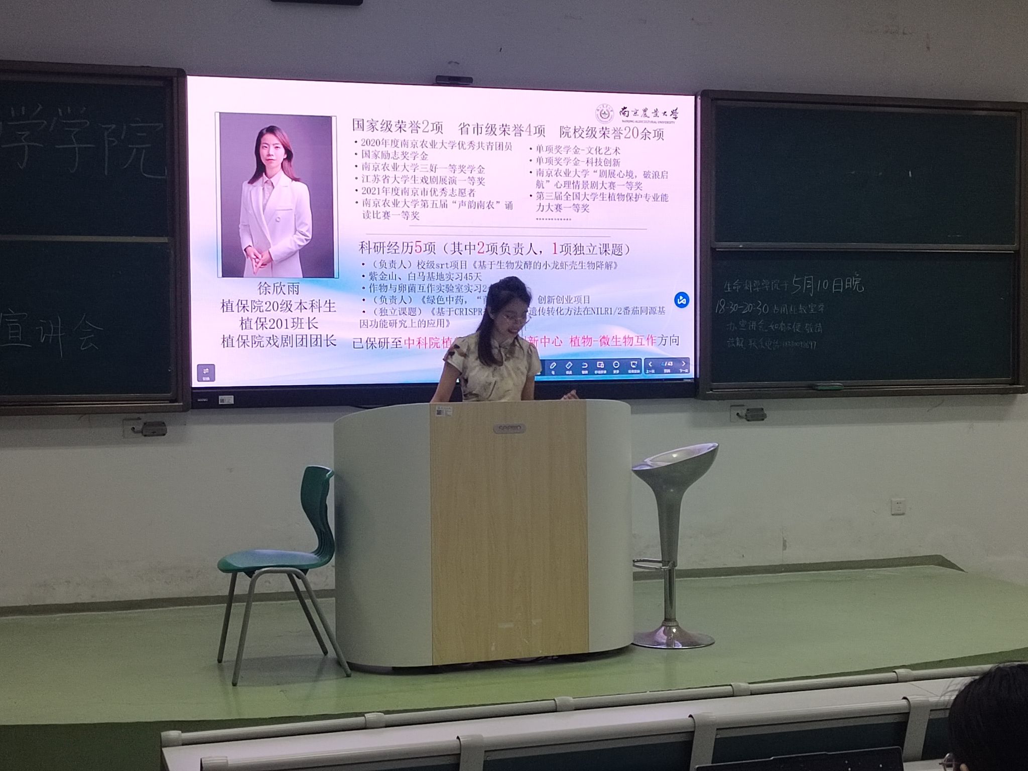 5月10日晚7时,生科院最有影响力学生宣讲活动在主楼143教室顺利举行。本次宣讲活动,由最具影响力宣讲团成员,来自植物保护学院的徐欣雨和动物医学学院的周欣玉进行宣讲。