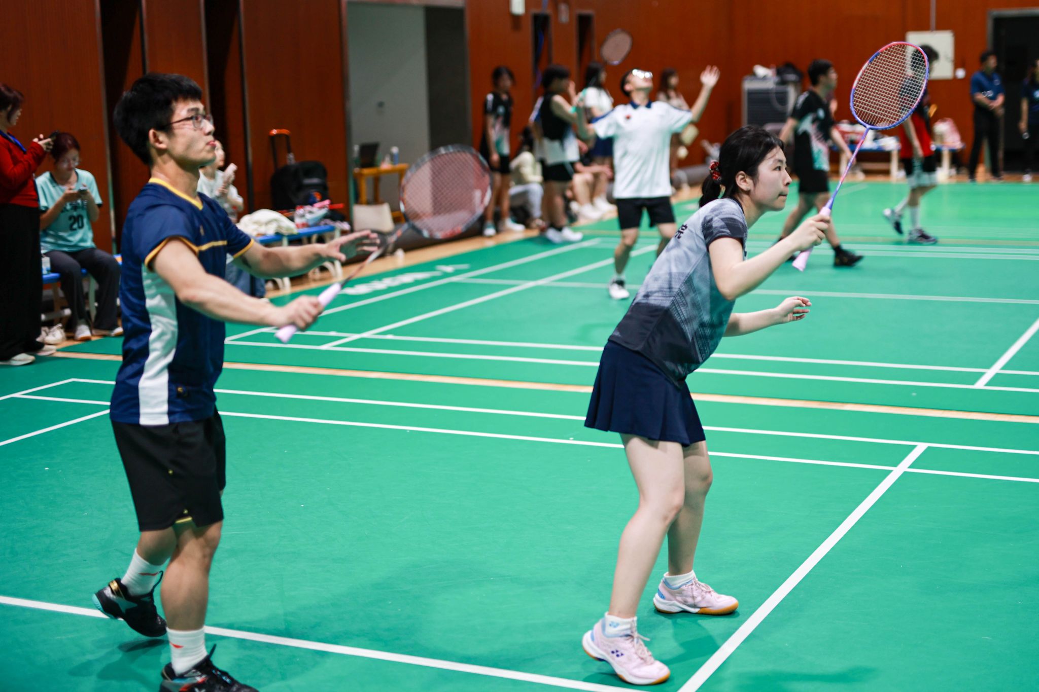 在本次比赛中,生科院羽毛球队的每位队员都发挥着至关重要的作用。在场下,他们秉持初心、刻苦训练,将基础打得牢固坚实;在场上,他们拼尽全力、奋勇拼搏,将体育精神贯彻始终。无论是精准稳定的发球,还是恰到好处的接球,抑或是霸气四溢的杀球,都凸显着羽毛球比赛中必不可少的个人技术储备。
