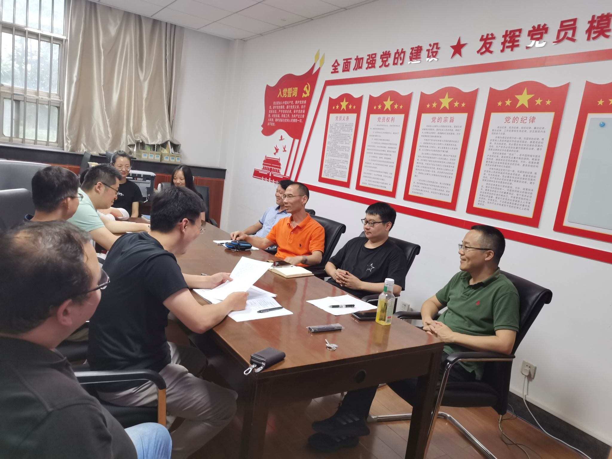 首先,支部书记师亮同志代表支委会汇报组织生活会前期准备情况,并向各位党员报告主题党日活动、党课学习活动等本支部的主题教育活动开展情况,代表支委会作对照检查。