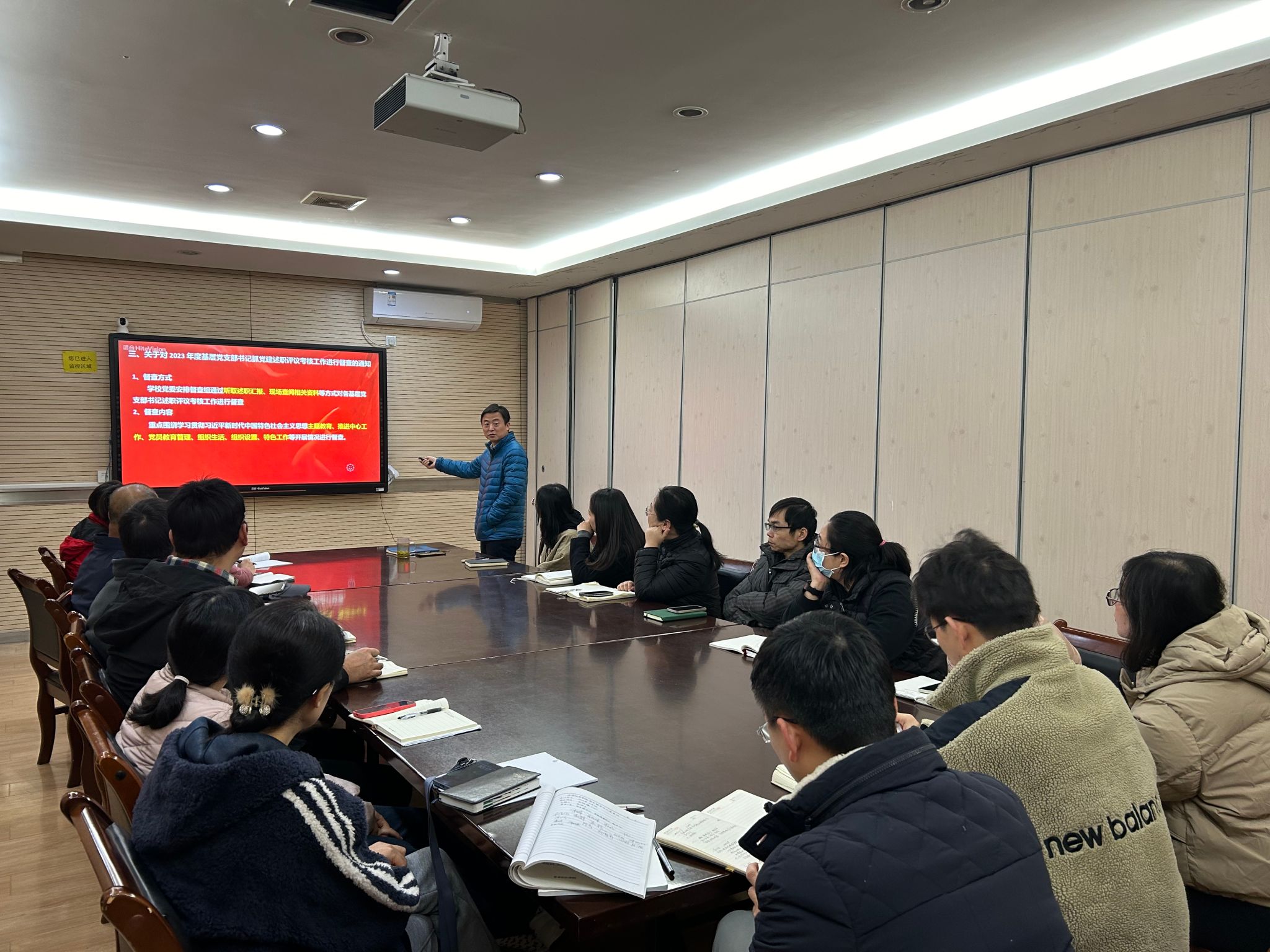 会上,赵明文书记详细介绍学院党支部工作考核条例的内容,强调要不断提升党支部组织力,强化党支部政治功能,充分发挥党支部战斗堡垒作用。在集中进行理论学习时,支部书记们充分讨论交流,更加坚定以立德树人为根本任务,以为党育人、为国育才为根本目标,为早日实现教育强国目标而奋斗努力。最后,根据组织部的通知要求,明晰督察内容清单,要求各支部高度重视,压实党建工作主体责任,推动支部建设制度化、规范化。