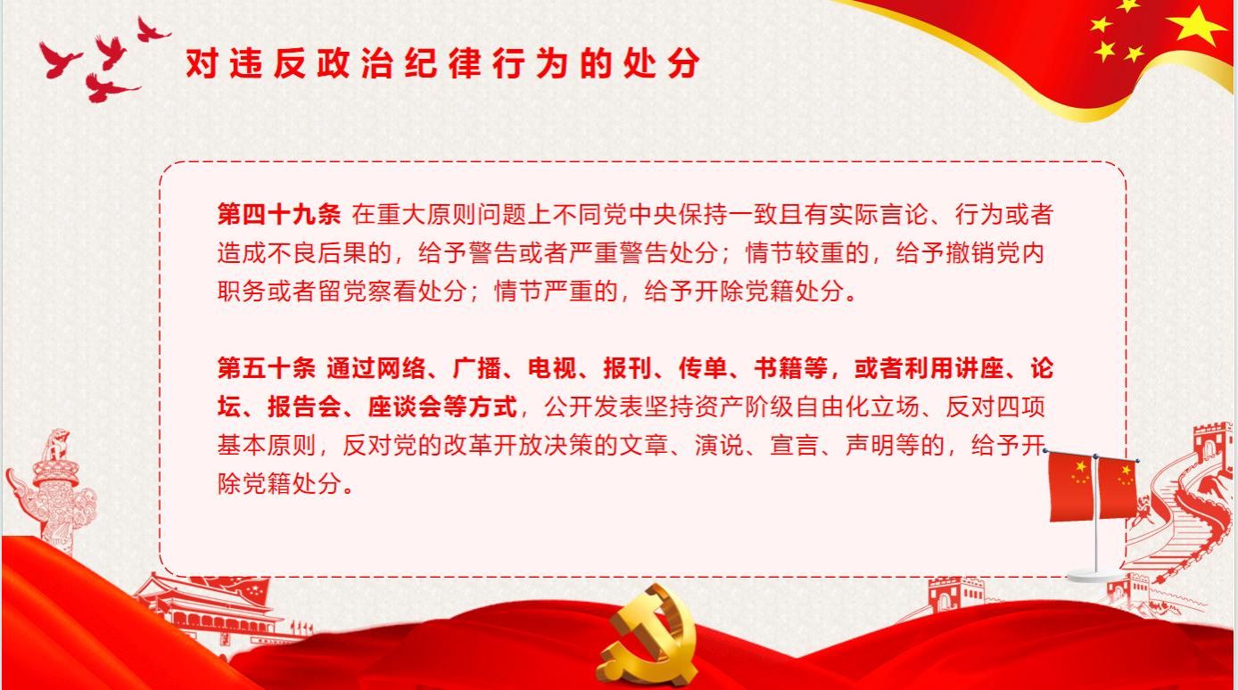 《中国共产党纪律处分条例》是根据《中国共产党章程》制定的党内法规,对什么样的行为是违犯党的纪律的行为、应当给予什么处分,做出了明确具体的规定。《条例》是管党治党的重要基础性法规,不仅为惩治违纪违法行为提供了定性量纪标准,也是为广大党员提供了科学、合理的行为规范。