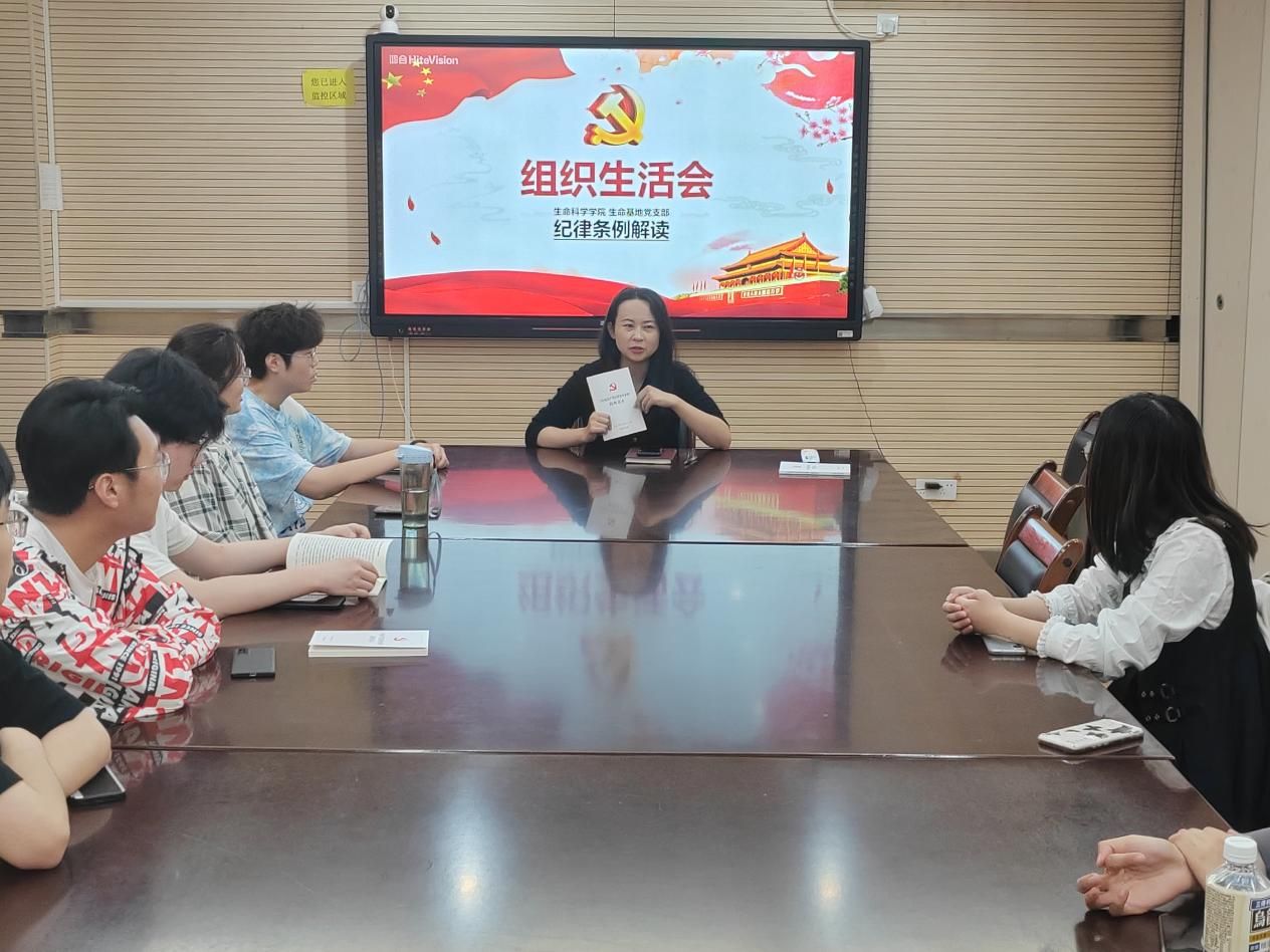 2024年4月26日,生命基地党支部在生科楼C2011举行“学条例 守党纪 强党性”主题学习活动,党支部副书记马仁博主持会议。