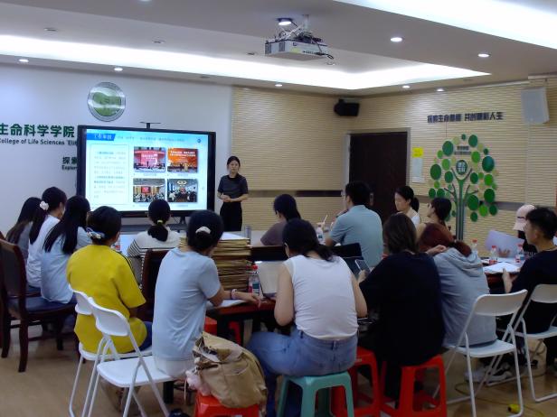 会议首先由生科院研究生第五党支部副书记苟小云分享工作心得。她介绍了支部在管理上的创新做法,例如按实验室划分党小组以便于协调科研与党务,建立党员信息预收集、按群分类管理、月度工作台账等高效的档案管理机制,同时就不同类型党员的发展与转正规范进行了说明。