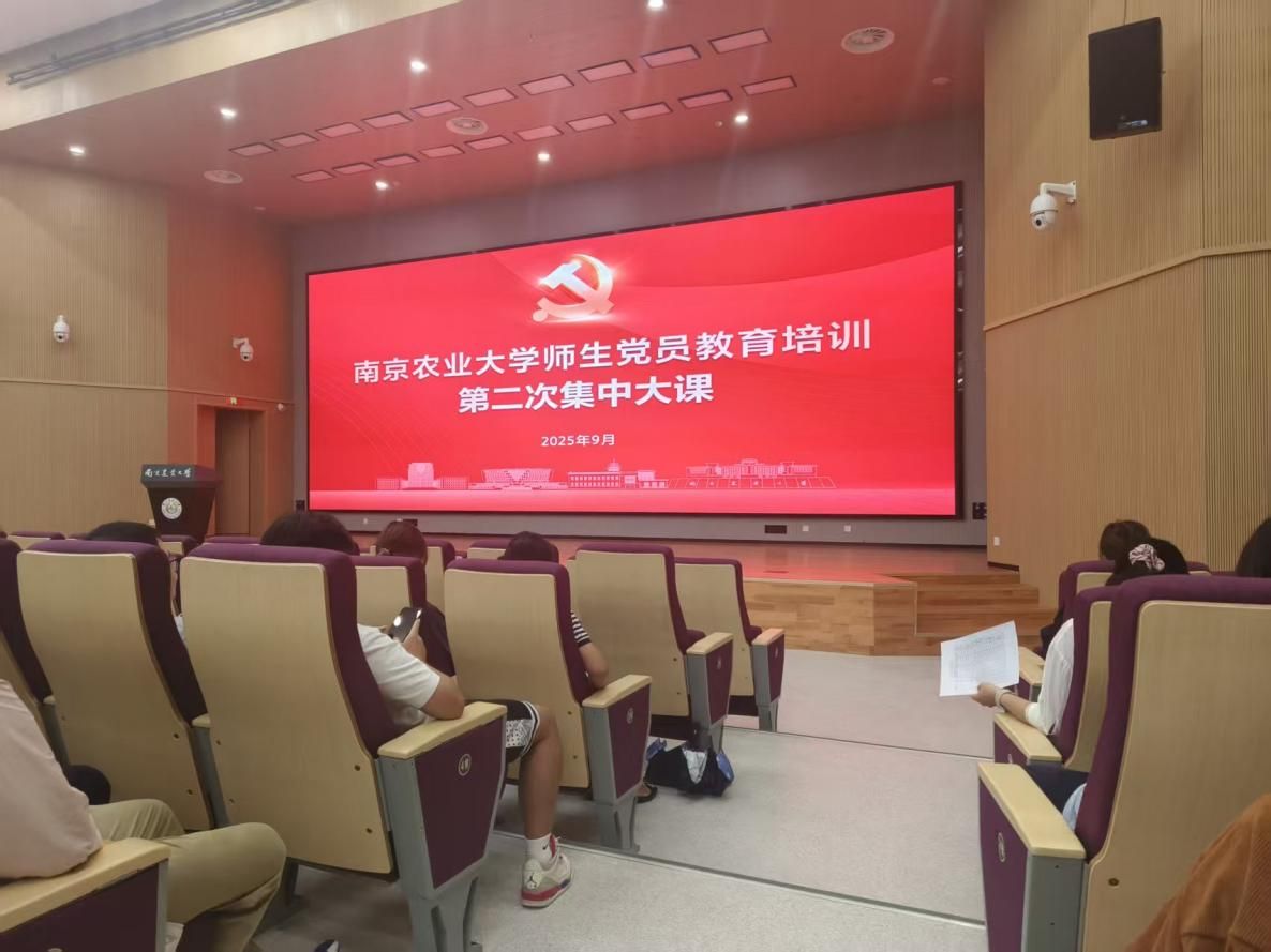 为深入贯彻落实新时代党的建设总要求,提升党员队伍的政治素养与综合能力,生命科学学院研究生第七支部30名党员于2025年9月24日13:30在滨江校区图书馆报告厅参加了南京农业大学师生党员教育培训第二次集中大课的学习。本次培训的主题是“深入学习贯彻习近平总书记关于教育的重要论述,落实全国教育大会精神”,主讲人为教育部部长怀进鹏。
