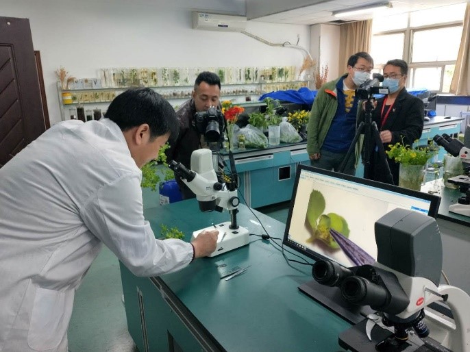 生物学实验教学中心的老师们精心搭建了一个直播间,在补光灯下,陈亚华教授对着摄像机第一次成为 “带货主播”,不过陈老师带的“货”是“植物生理学实验教学”。为了确保视频质量,陈老师不断摸索方法,拍摄了多次才完成,中心教师将视频剪辑加工后用于教学。疫情期间,宋小玲教授做起了“花主播”,走到哪儿讲到哪儿,实验室和校园都是她的直播间,植物学分类教学顺利开展。