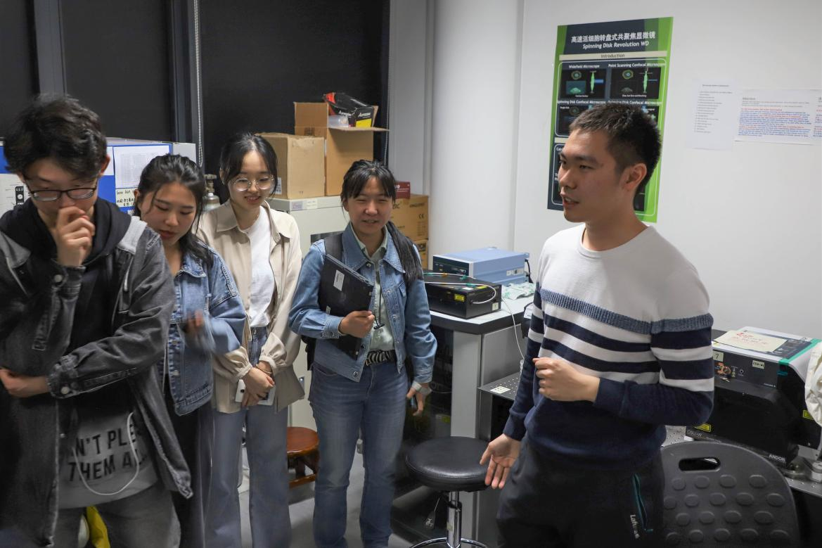 报告结束后,南农生科院毕业生、“未来生物学家计划”学员朱彧带领新学员们参观逆境中心。通过他的讲解,学员们初步了解了逆境中心的设施布局、研究环境和学习工作内容。在参观实验室时,学员们偶遇了正在移栽拟南芥幼苗的毛妍斐老师。她与学员们进行了亲切友好的交谈,并分享了开展植物实验时的一些经验。