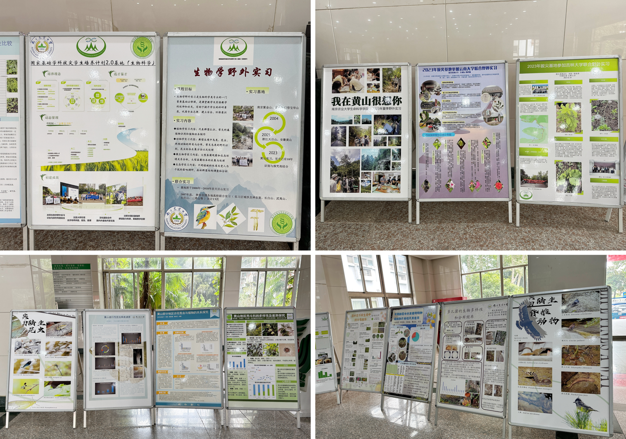 2023年9月28日,生物学野外实习探究性专题项目成果海报在生科大厅展出,为期一月。