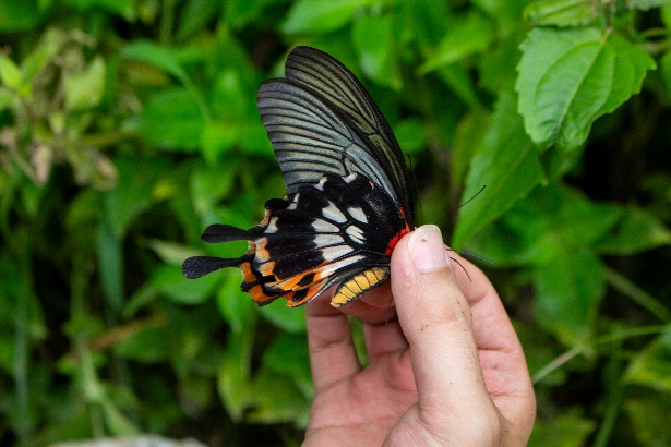 在探寻保护区内鳞翅目类群生物多样性的过程中,同学们观察到了绿裙玳蛱蝶、斜带环蝶、素饰蛱蝶、小豹律蛱蝶、绿弄蝶、三点桠灰蝶、丽蛱蝶、小纹青斑蝶等数十种野生的蝶类和蛾类,认识到了蝶类和蛾类的区别,并且拍摄到了罕见的美凤蝶交配过程和栖息在马兜铃上的红珠凤蝶幼虫。新奇而幸运的经历丰富了同学们的认知,让同学们对于美妙的昆虫世界有了更深的理解。