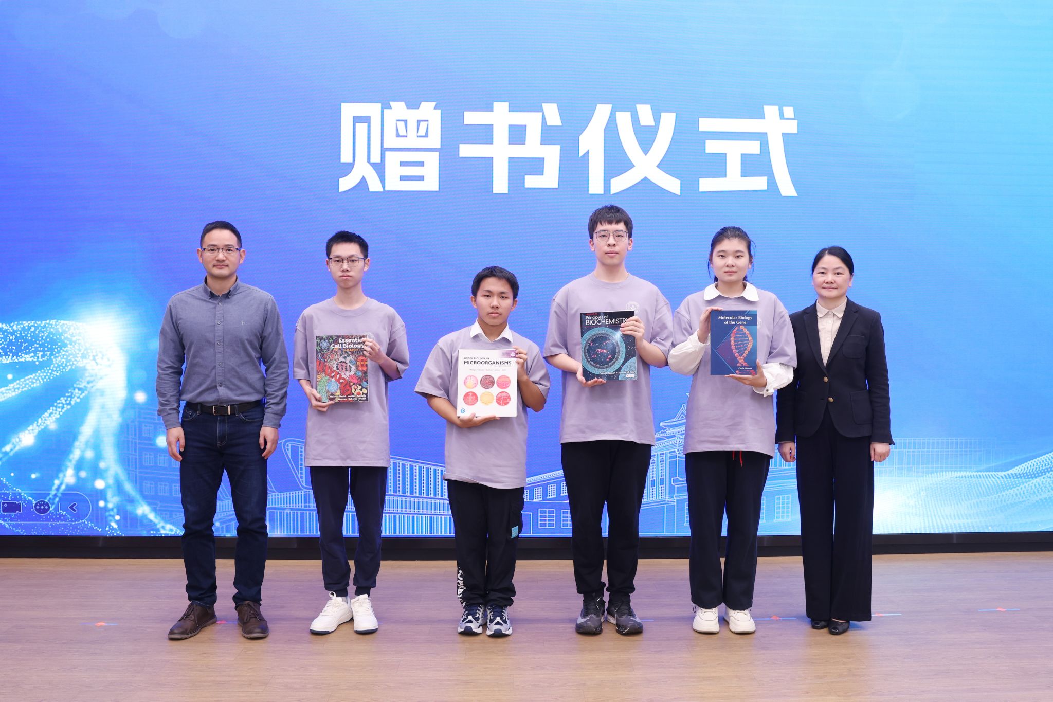 王源超宣读《关于聘任生物科学拔尖基地班“特聘导师”的通知》,并与朱艳为特聘导师代表颁发聘书。学生代表为导师献花,导师回赠以“希望之种”。曹爱忠、施雪钢为学生代表赠送英文原版教材。