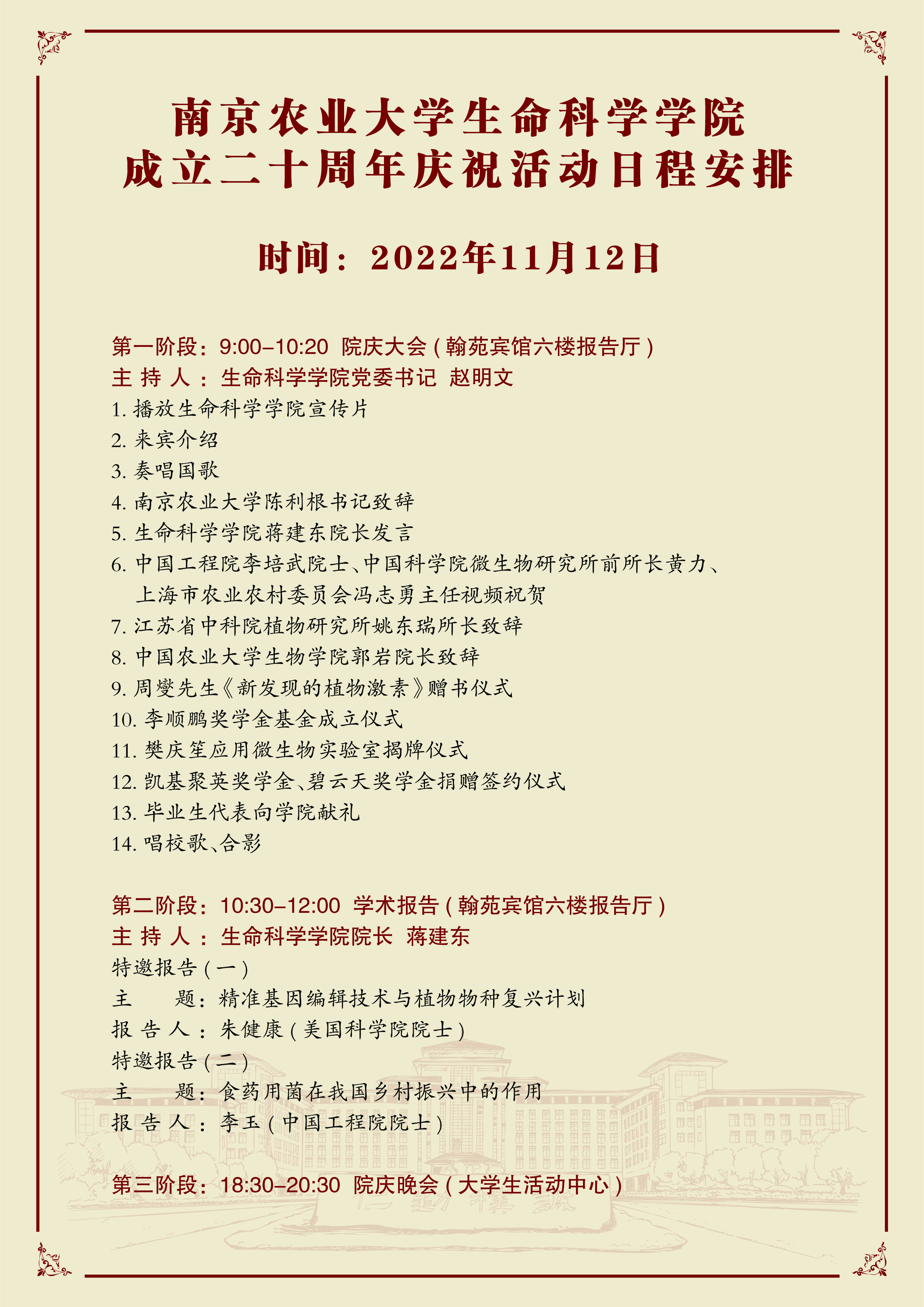 南京农业大学生命科学学院成立二十周年庆祝活动