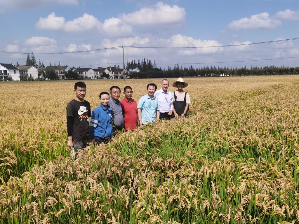 沈文飚团队和法液空团队在上海市青浦区法液空—南京农业大学氢农业基地的富氢水灌溉水稻示范田工作(2021.10)