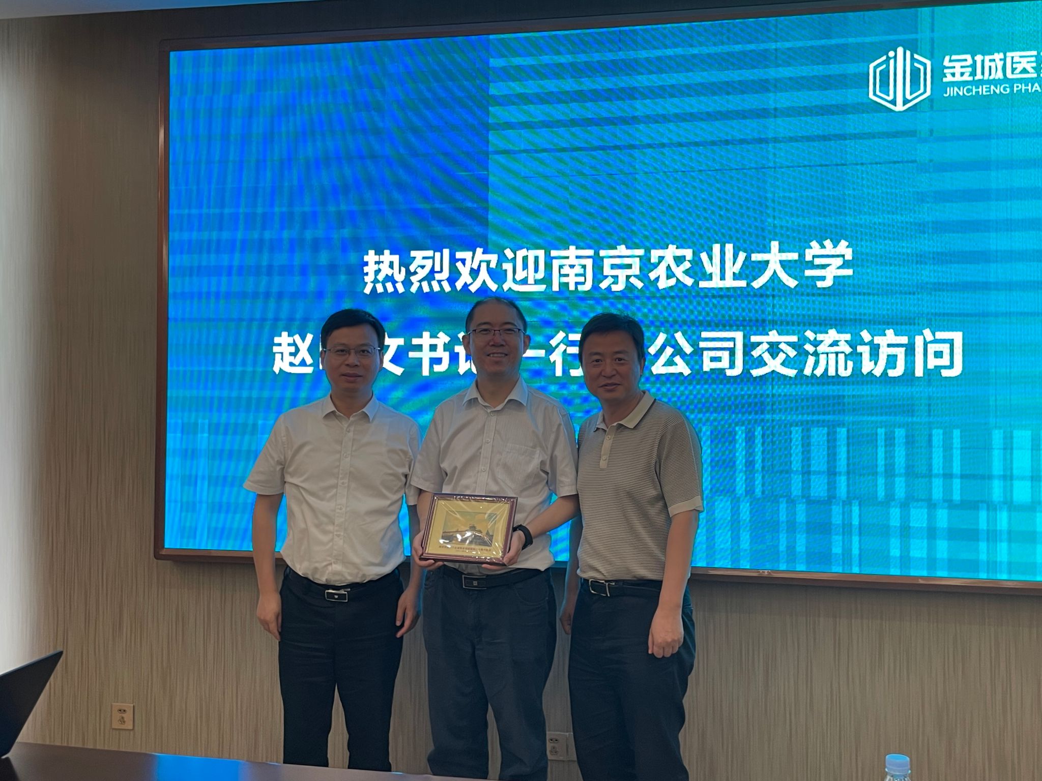 7月7日,南京农业大学生命科学学院党委书记赵明文、院长蒋建东等一行7人赴山东金城医药集团股份有限公司就产业发展、研究生工作站以及就业等方面工作开展访企拓岗专项工作。