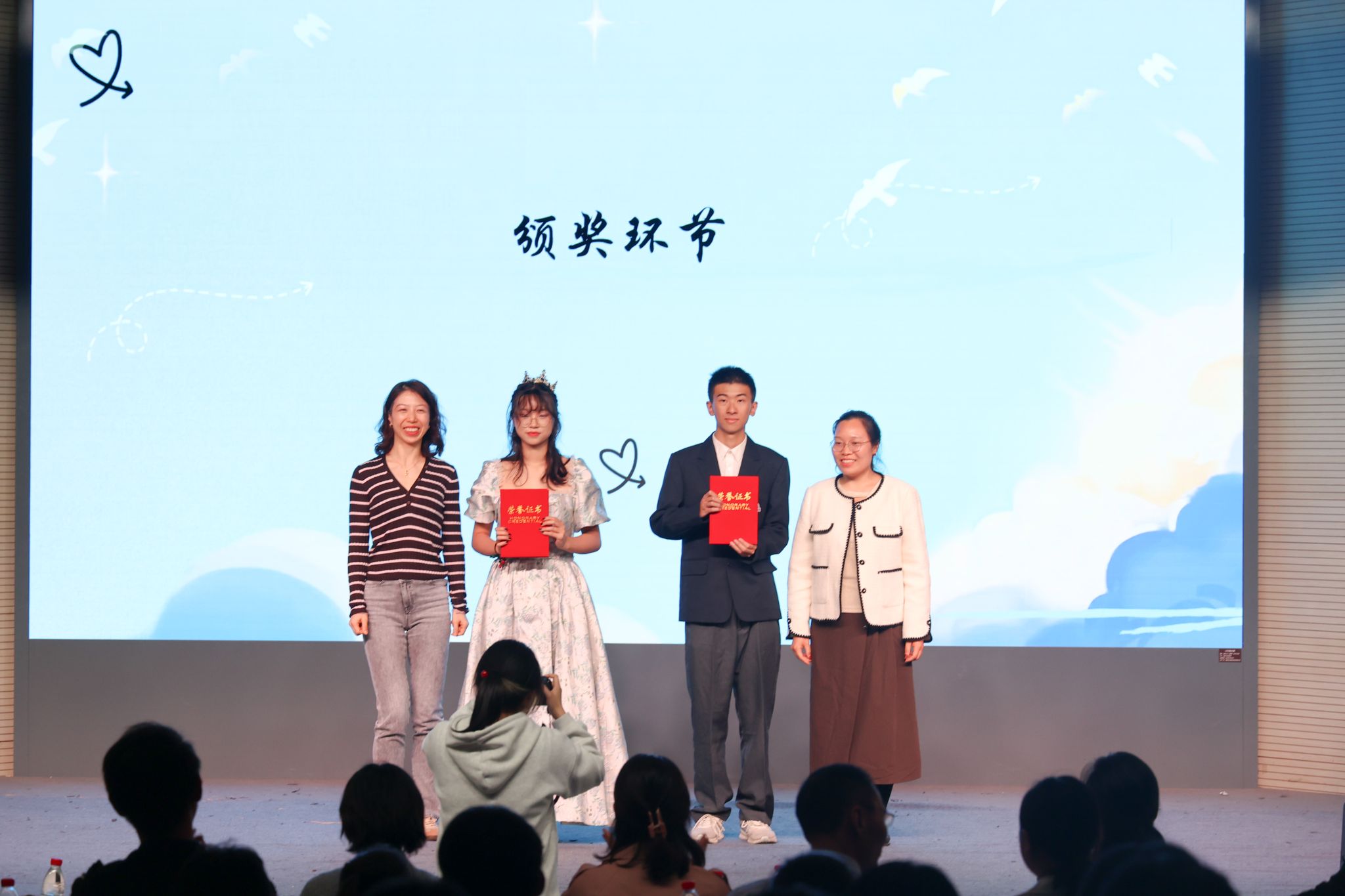 最后,生科院各位领导与老师分别对各类节目进行颁奖。生物类2304班获得特等奖,理基231班获得一等奖,生物类2301和拔基231班获得二等奖,命基232、生物类2303和生物类2302班获得三等奖。伴随着谢幕合唱《我们的歌》,晚会落下帷幕。