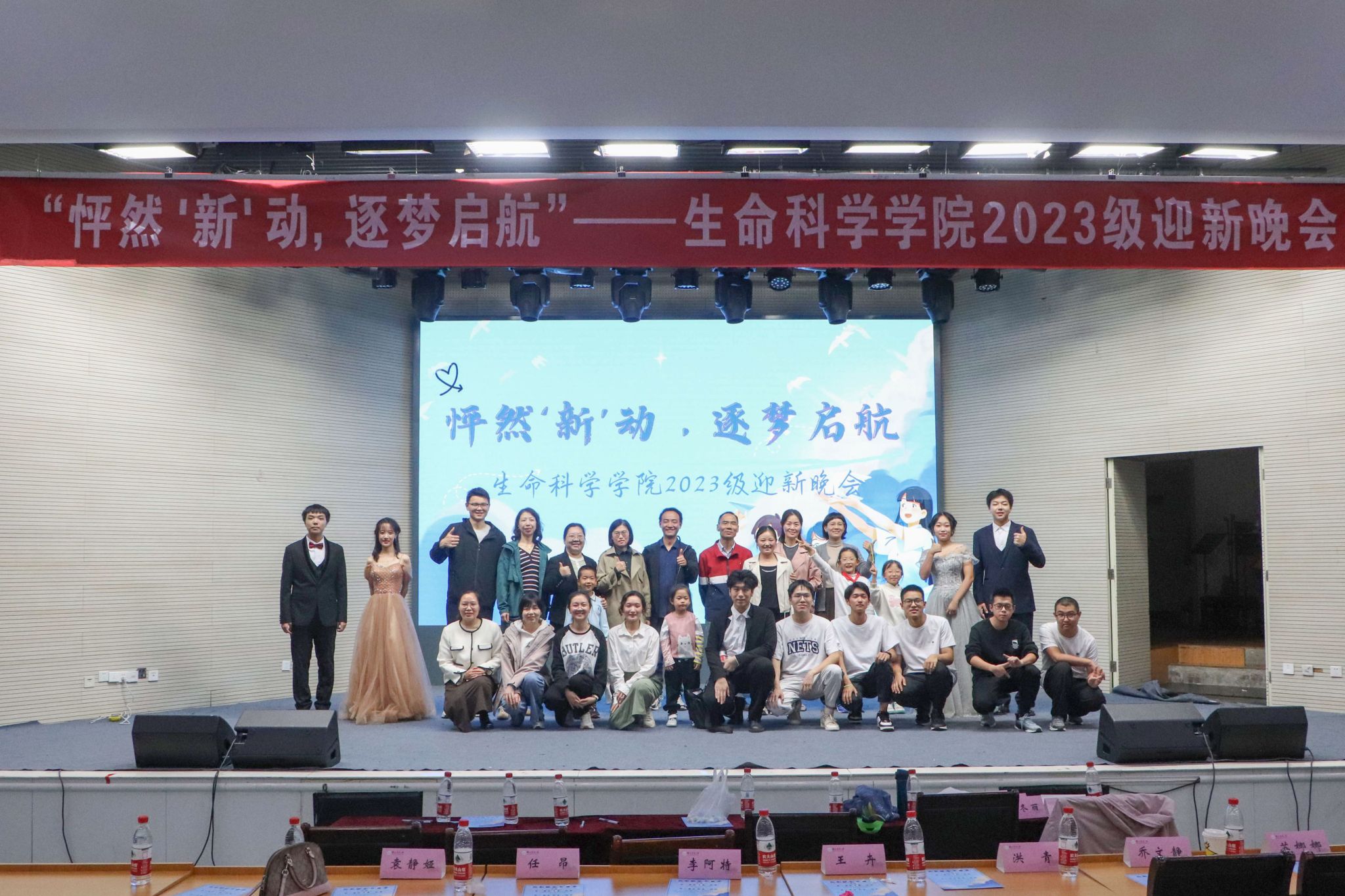 10月20日晚6点半生命科学学院“怦然‘新’动,逐梦启航”迎新晚会在大学生活动中心顺利举行。出席本次晚会的有党委副书记李阿特,团委书记、本科生辅导员王晓月,本科生辅导员王哲、李梦宇、宛涛以及八位新生班主任。担任本次新生风采大赛的评委有办公室主任赵静、研究生辅导员孙冬丽、党委秘书李娜、研究生教学秘书陈一楠、本科生教学秘书潘汝浩和本科生基地教学秘书刘园园。