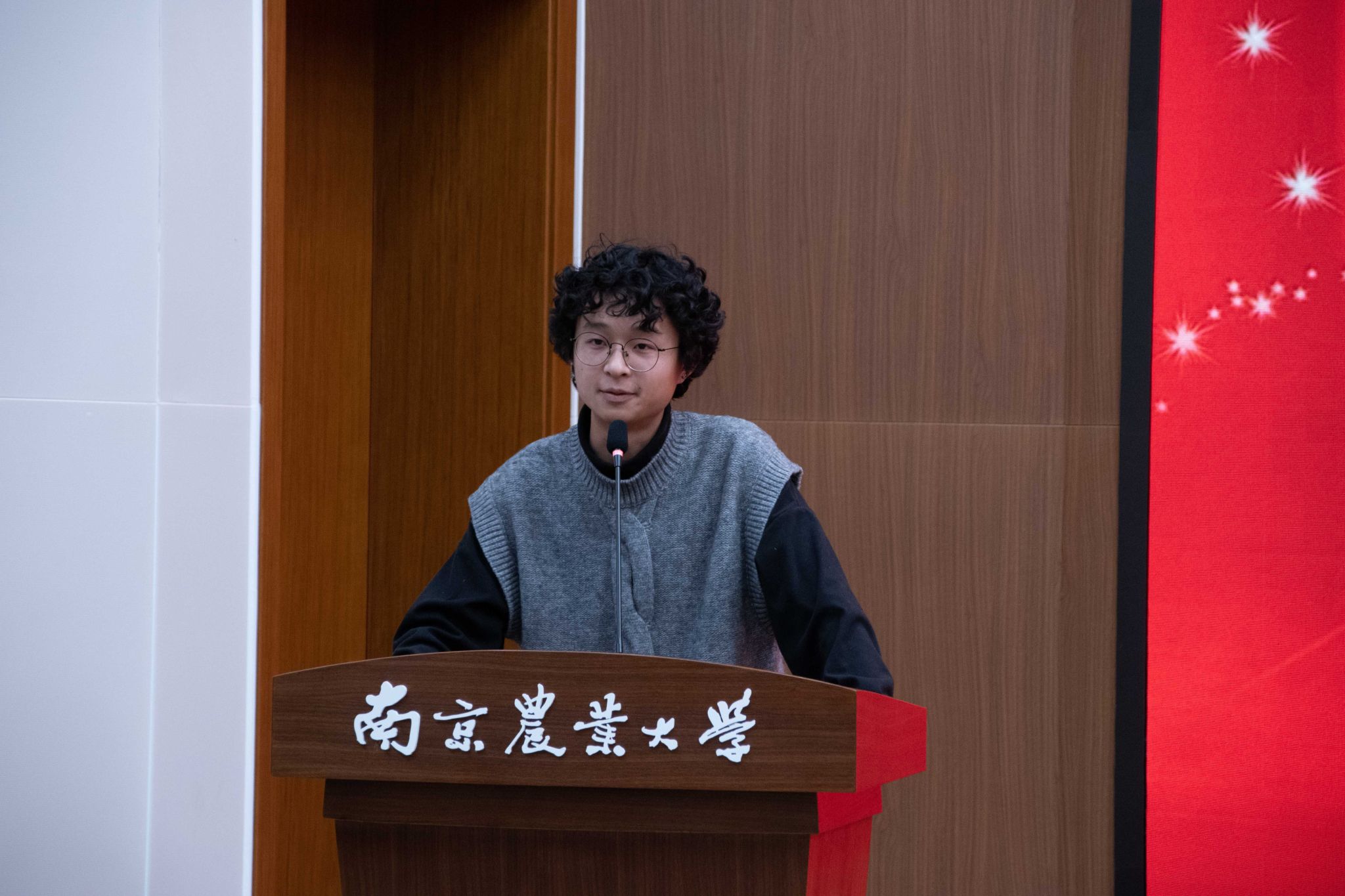 在科技创新篇章,大会主持人介绍了我院特色的“低年级重普及,高年级重提高”的学生课外科技创新的工作格局。大会表彰了2023年国际基因工程机器人大赛(iGEM)团体金奖获得者;2023年国际定向进化大赛(iDEC)团体金奖获得者;南京农业大学第七届Agar Art大赛团体一、二、三等奖获得者;第七届科普调研计划团体一、二、三等奖获得者。之后,iGEM队长程波讲述了他的科研故事。程波表示,在参加iGEM比赛的两年中,给他带来最大的收获从来都不是奖项,而是对性格的历练以及对科研能力的提升。他感慨道:“在大学,一群人为了一个目标而拼尽全力,本身是就一件热血的事,是一件充满生命力的事。”