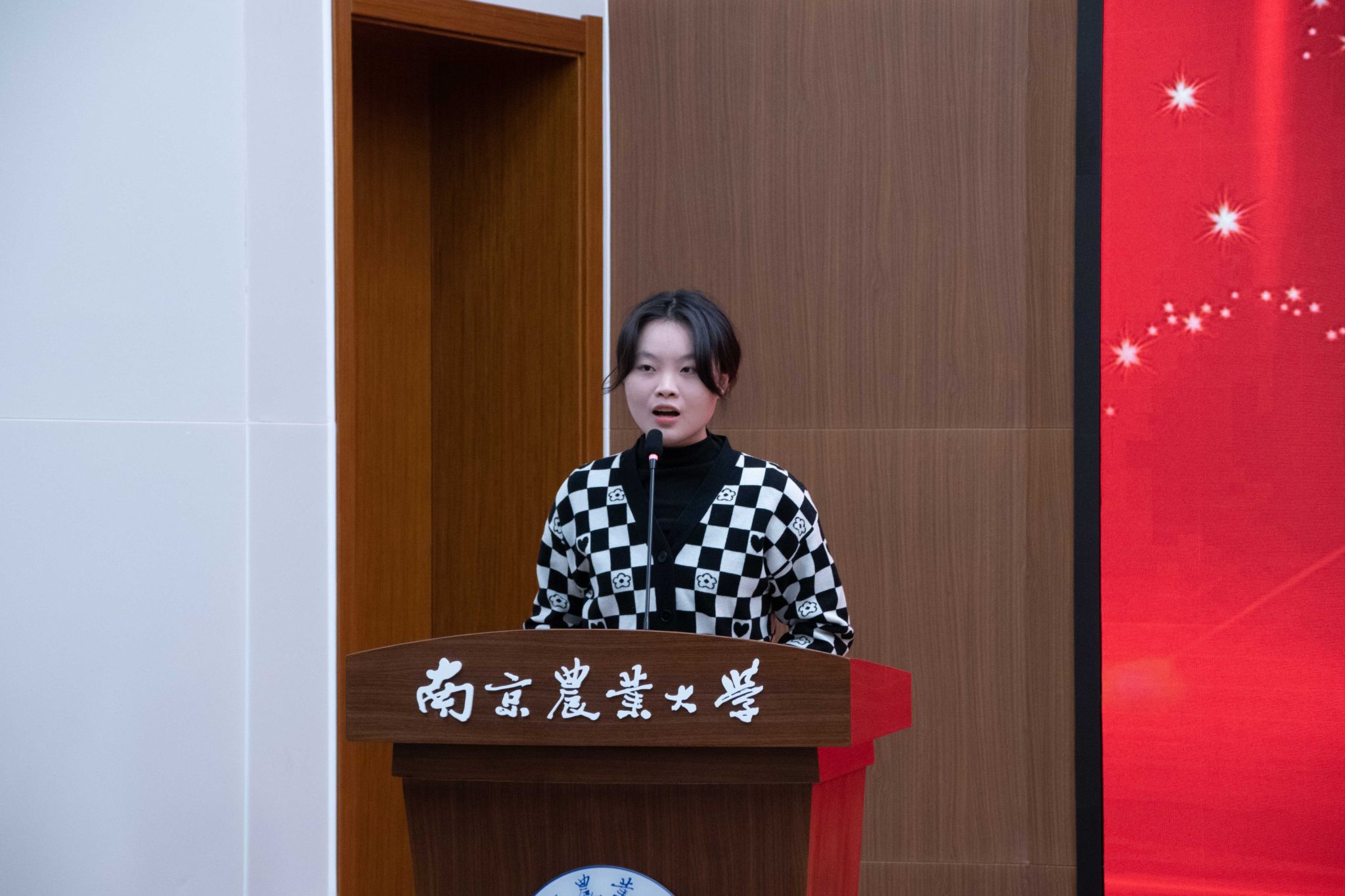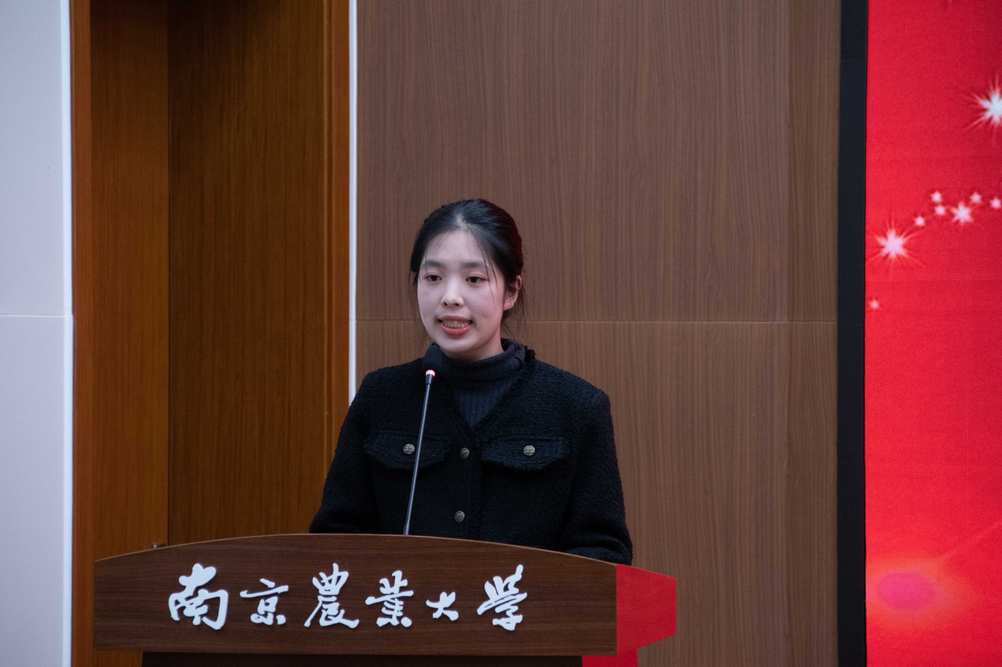 在学风建设篇章,蒋建东为获得“国家奖学金”的同学代表颁奖;李阿特为获得“国家励志奖学金”的同学代表颁奖;张群为获得“名人企业奖学金”的同学代表颁奖;孙益军为获得“凯基聚英奖学金”同学代表颁奖;陈栋为获得“伟沃生物奖学金”的同学代表颁奖;范水凤为获得“金龙鱼奖学金”的同学颁奖刘巧英为获得“樊庆笙奖学金”的同学颁奖。之后,刘巧英作为企业代表讲话。刘巧英表示,设立奖学金是企业家为南农培养优秀人才所尽的绵薄之力。同时,刘巧英对我院学生送上了美好祝愿。