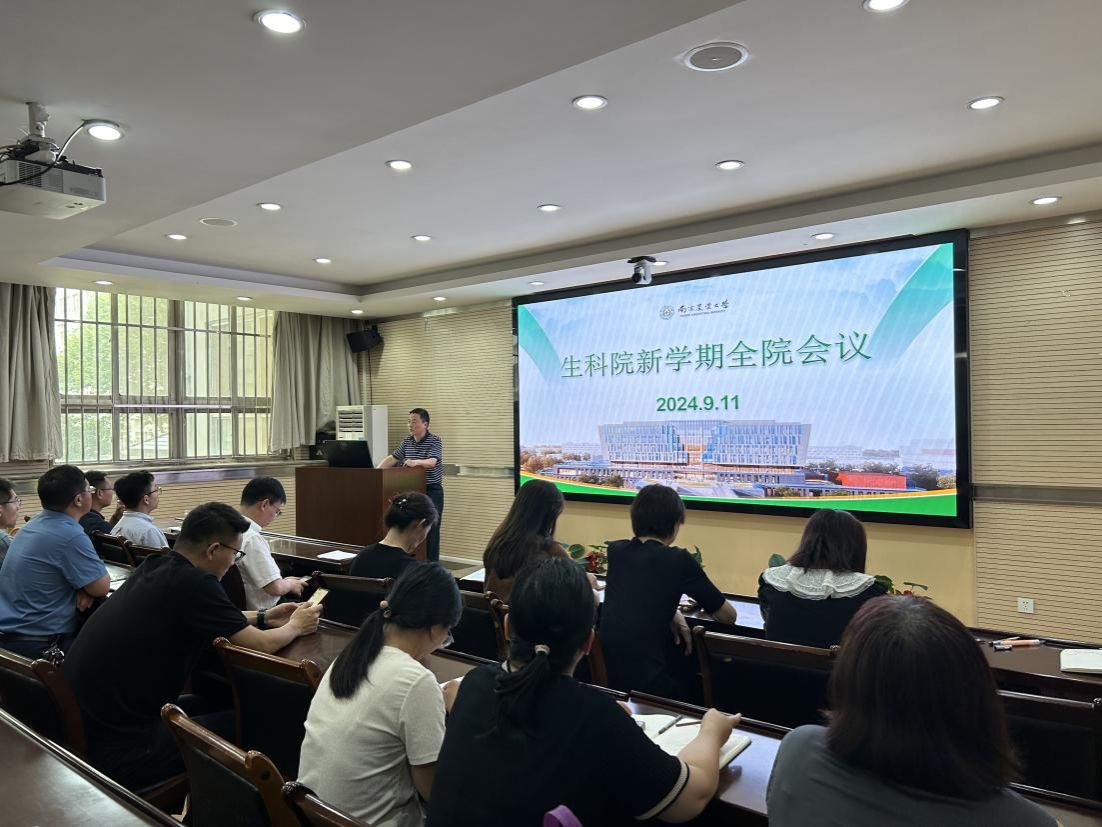 9月11日下午3点,在生科楼会议室召开了生命科学学院新学期工作会议,学院领导班子成员出席会议,会议由院长蒋建东主持,全体教职工参加。