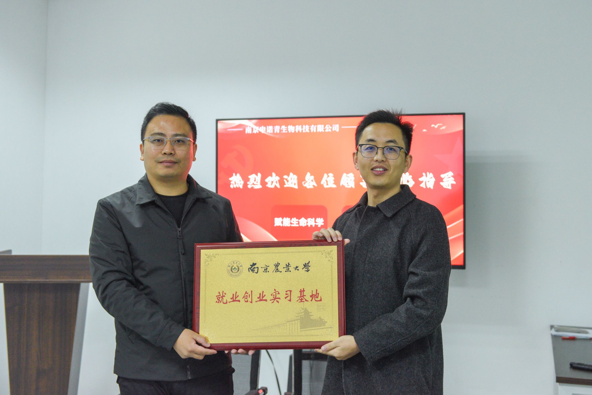 阙立刚和寇程坤代表双方单位签署了南京农业大学就业创业实习基地共建协议并进行授牌。