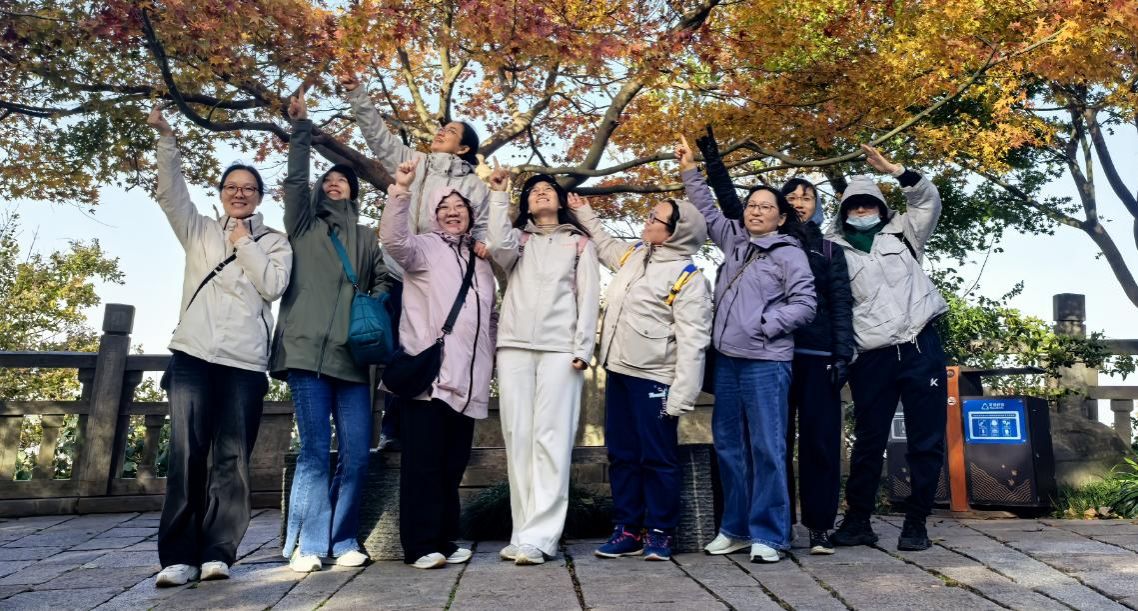 初冬季节,栖霞山红枫成林,风景迷人。植物园红枫岗亦不遑多让,别有韵味。老师们三五成群结伴而行,置身于优美的环境中,时而驻足远眺美景,时而细品身边红枫。大家一路兴致高涨,边走边拍,欢声笑语,在活动群里斗图美照,流连忘返。徒步结束后,在活动群中“赛”出各自运动步数。