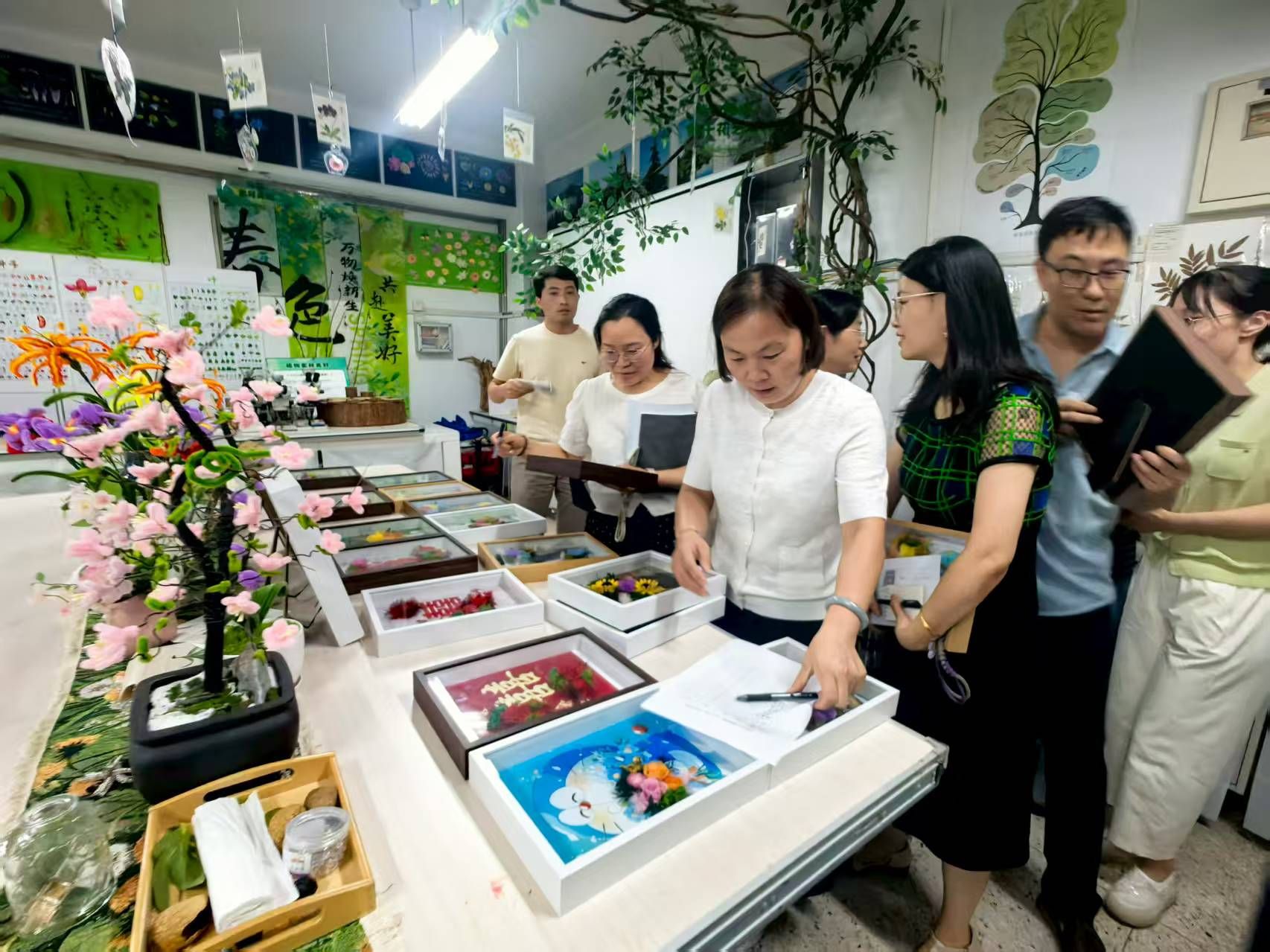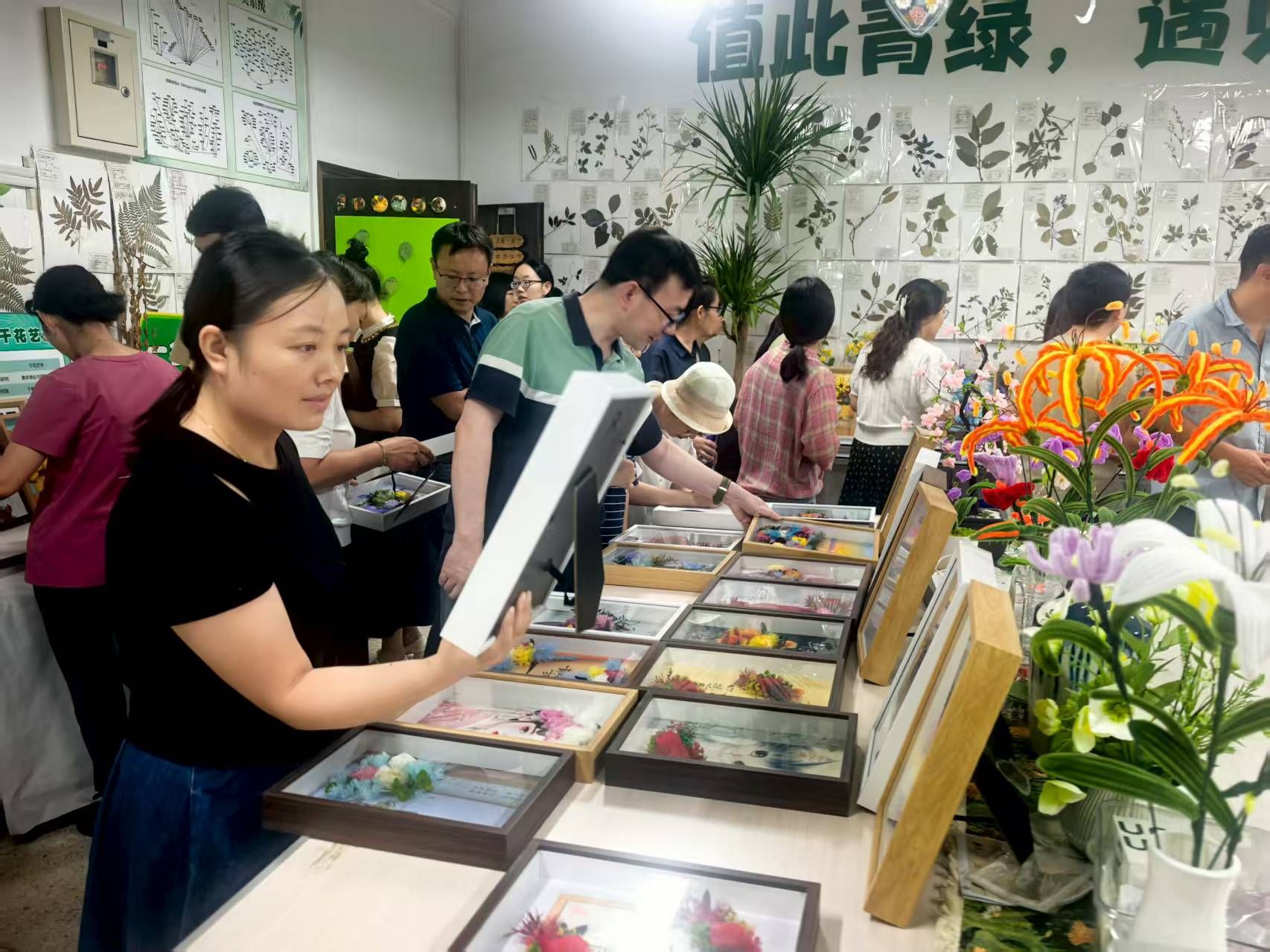 在新开张的植物疗愈工坊,“花的学校”永生花展吸引了众多教师驻足观赏。由多种花卉组合而成的永生花框造型新颖、色彩斑斓,既有艺术的巧思,又饱含生物学的特色。展品一经亮相便引发热烈反响,教师们连连感叹“挑花了眼”。花卉所承载的生命意象与教育精神交织相映,为新学期注入清新色彩,更展现了学院师生崇尚自然、热爱生命的风采。