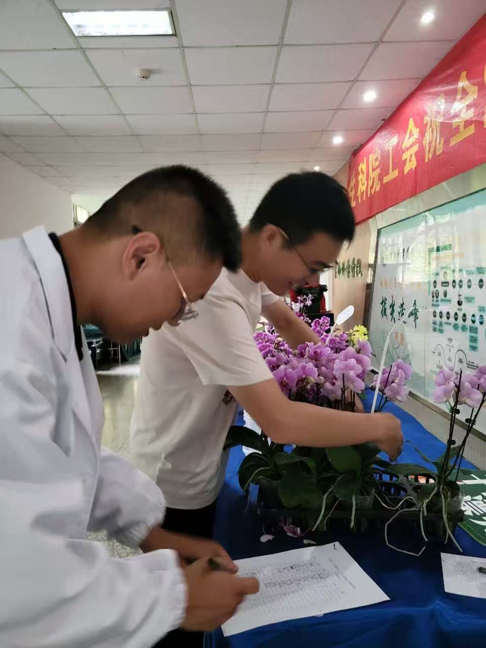 在生科楼二楼廊厅,八个品种的蝴蝶兰——珍珠、粉蝶、第一名、花蝶、彩蝶、黄冠、红辣椒、绿精灵——竞相开放。或洁白典雅,或热烈明艳,姿态各异、风姿绰约,映衬出节日的喜庆氛围。教师们纷纷拍照留念,沉浸在花香四溢的艺术美感之中。此次展览不仅展现了植物的自然之美,也为新学期营造了温馨而富有生命力的氛围。