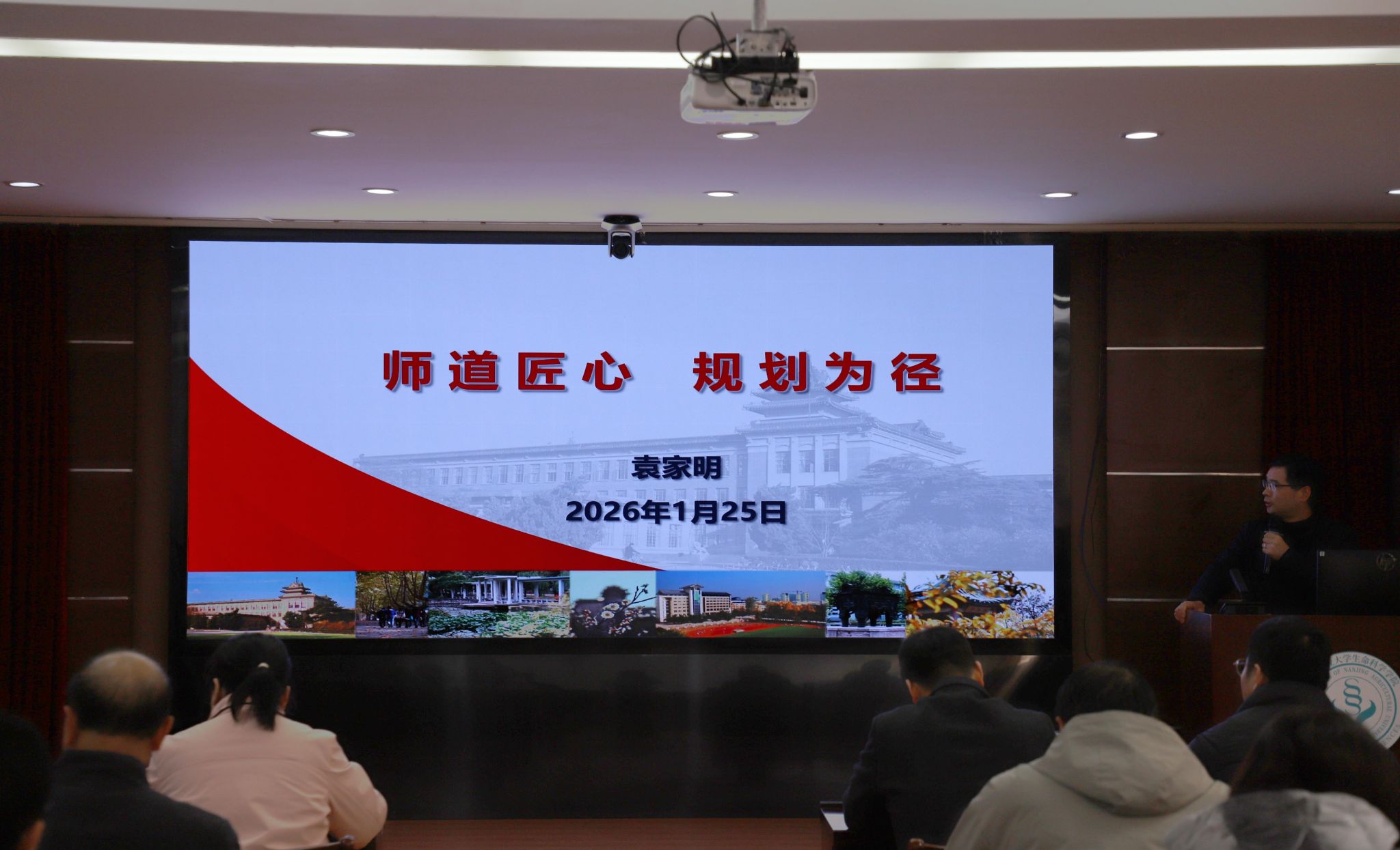 首先,南京农业大学科学研究院副院长葛焱、人力资源处副处长袁家明分别作题为“国家创新平台情况介绍”、“青年教师职业规划”的专题报告。在报告中,葛院长详细介绍了基础研究类平台、技术创新类平台、成果转化与产业化类平台以及条件保障类平台,并鼓励老师们积极运用好以上平台开展研究工作;袁处长则总结多方面经验,细致介绍了高校教师各年龄阶段的重点任务和未来任务考核的改革方向,为青年教师的职业发展提供极大的指导。
