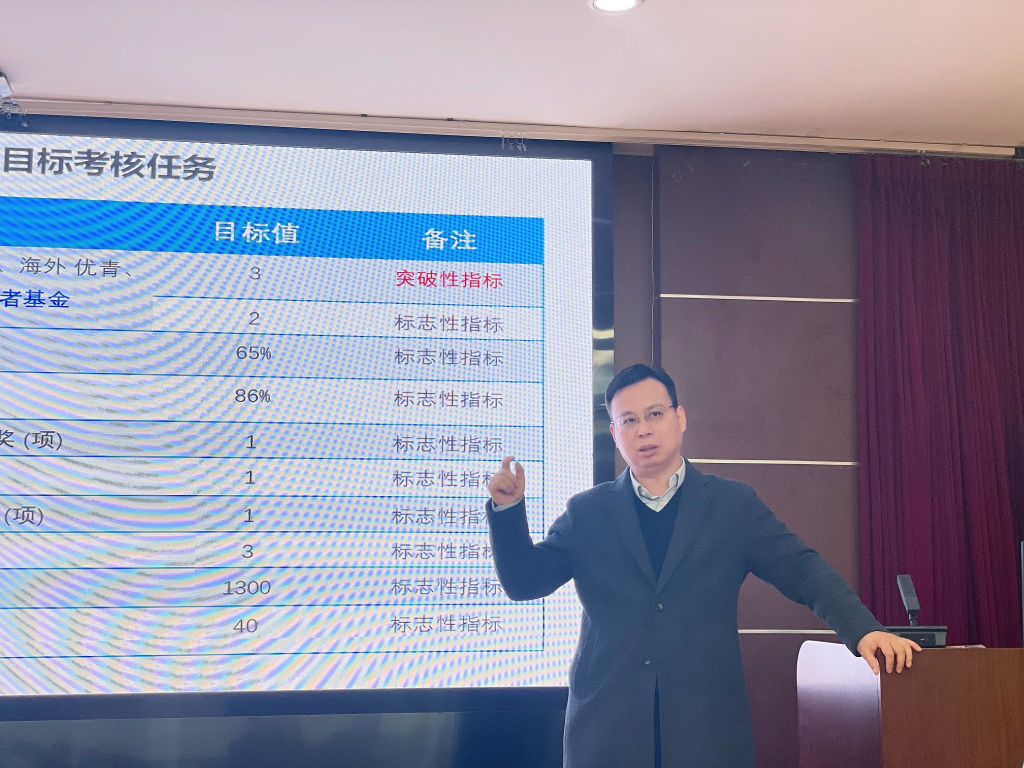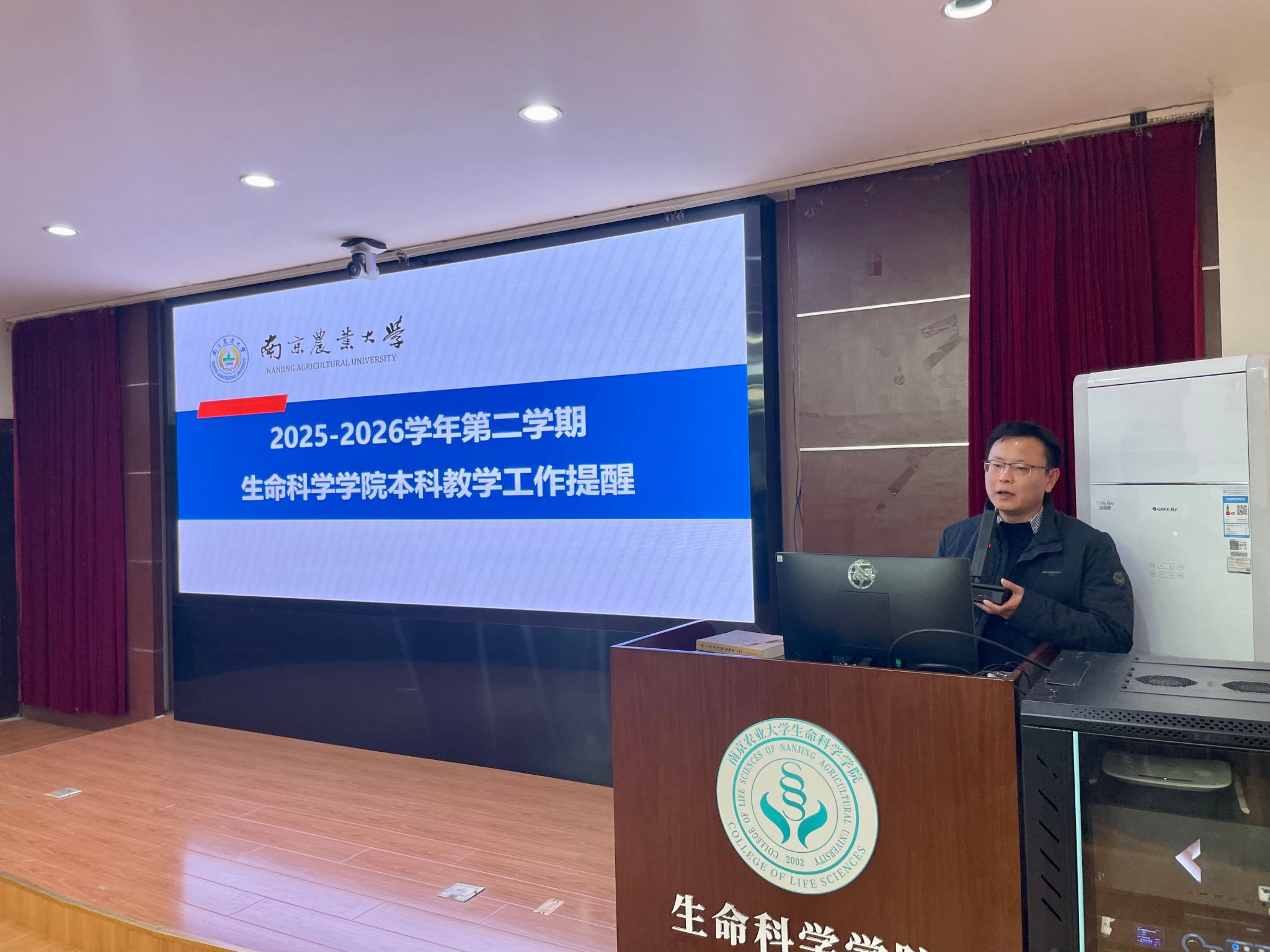 会上,蒋建东首先重点传达了学校新学期工作会议精神,深入学习了中共南京农业大学第十二届委员会第二十五次全体会议精神,详细解读了校党委书记王春春所作题为《以开局新气象 强国新作为 迎接学校第十三次党代会胜利召开》的大会报告,以及校长陈发棣所作题为《聚力攻坚 争创一流——在新发展阶段构筑学校发展新优势》的主题报告。结合学院学科特色与发展实际,详细拆解了生科院2026年度学院目标考核任务。他强调,全体教职工要提高政治站位,深刻领会学校会议精神,将个人工作与学院、学校发展同频共振,确保各项责任目标落地生根、见行见效,推动学院在人才培养、科学研究、社会服务等方面实现新突破。