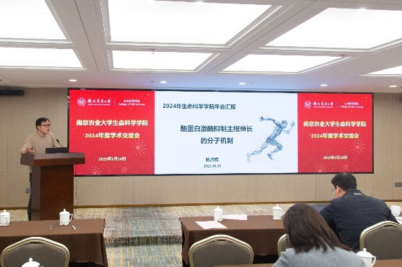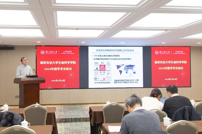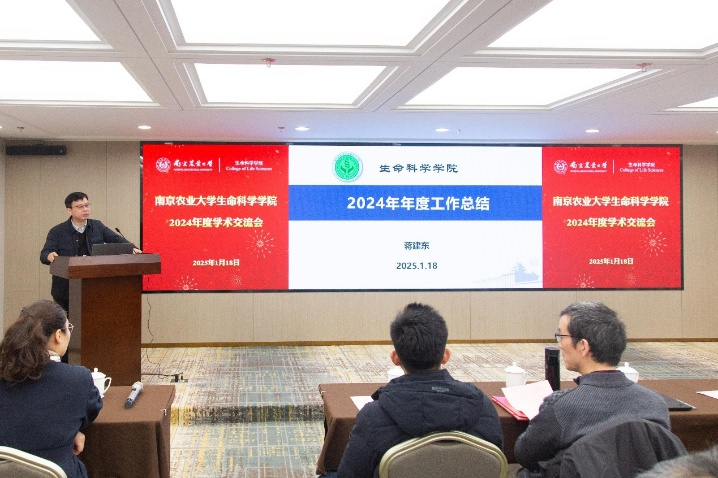 1月18日,南京农业大学生命科学学院召开2024年度学术交流会。生科院全体领导班子成员及在宁教职工参加。年会分为致敬楷模、学院工作总结、专题报告和学术交流四个部分。