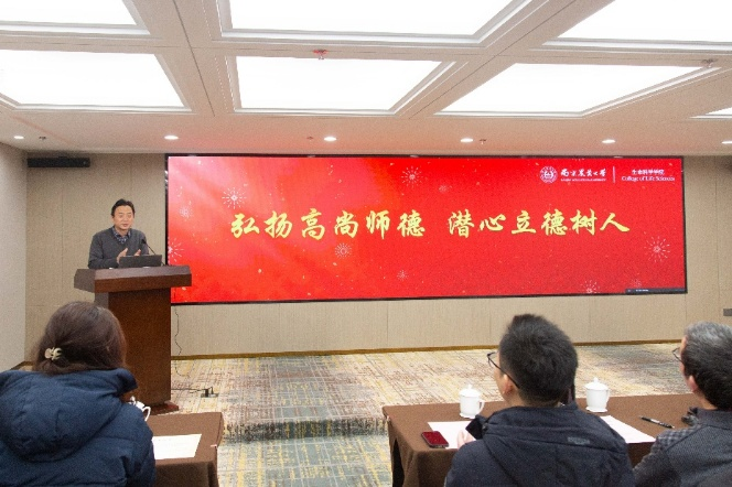 学院党委书记赵明文作题为“德韵启幕,致敬楷模”的讲话,他回顾了过去一年中学院在科研、教学、人才培养等方面取得的显著成就,并向为学院发展作出努力和贡献的师生表示崇高的敬意。弦歌不辍,赓续荣光,他鼓励大家继续发扬楷模精神,追求卓越,为生命科学事业的发展贡献力量。随后进行了“立德树人楷模“”学院优秀党支部书记“”学院先进工作者“颁奖仪式。