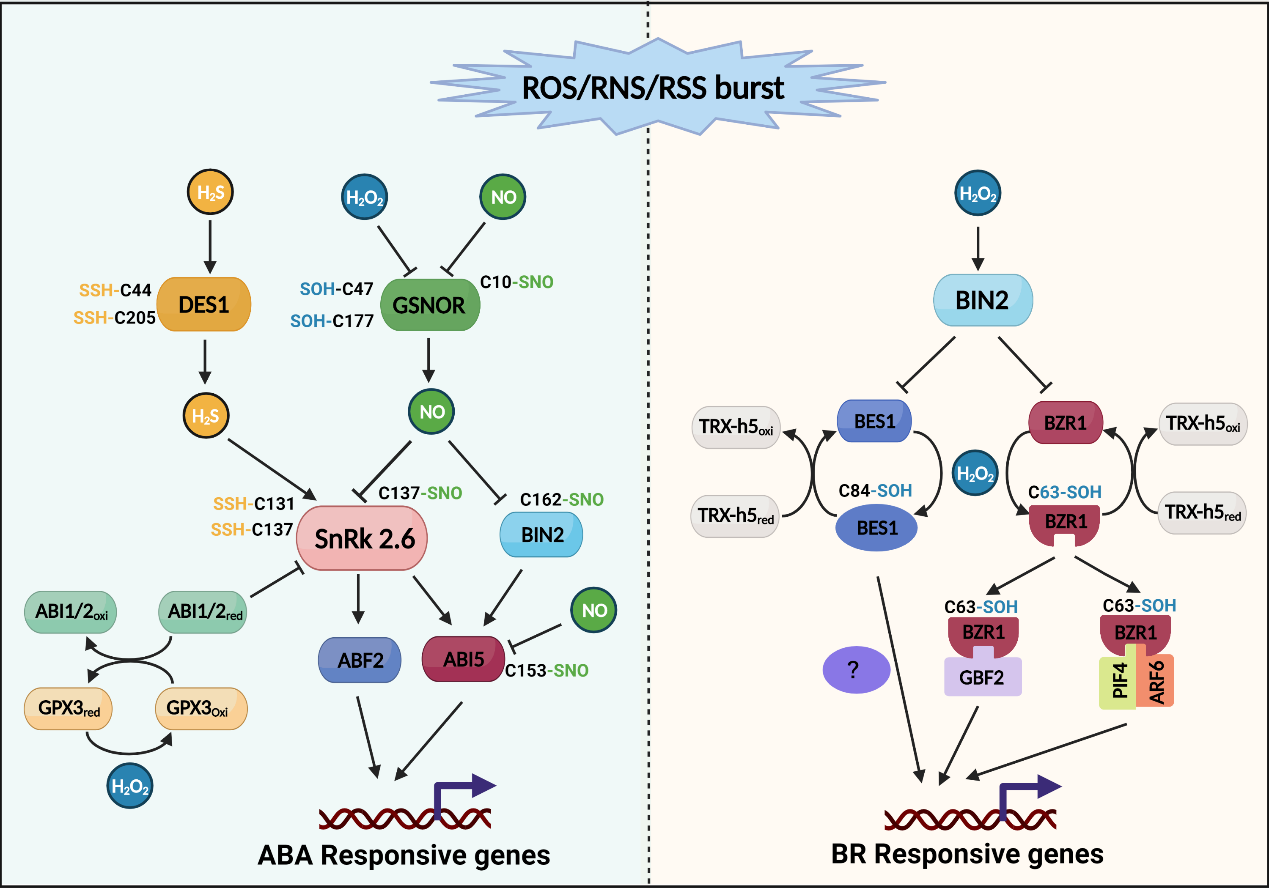 图2:ABA和BR信号途径中的氧化还原修饰