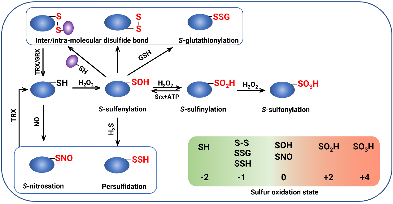 图1:氧化翻译后修饰(OxiPTMs)的产生和相互转变
