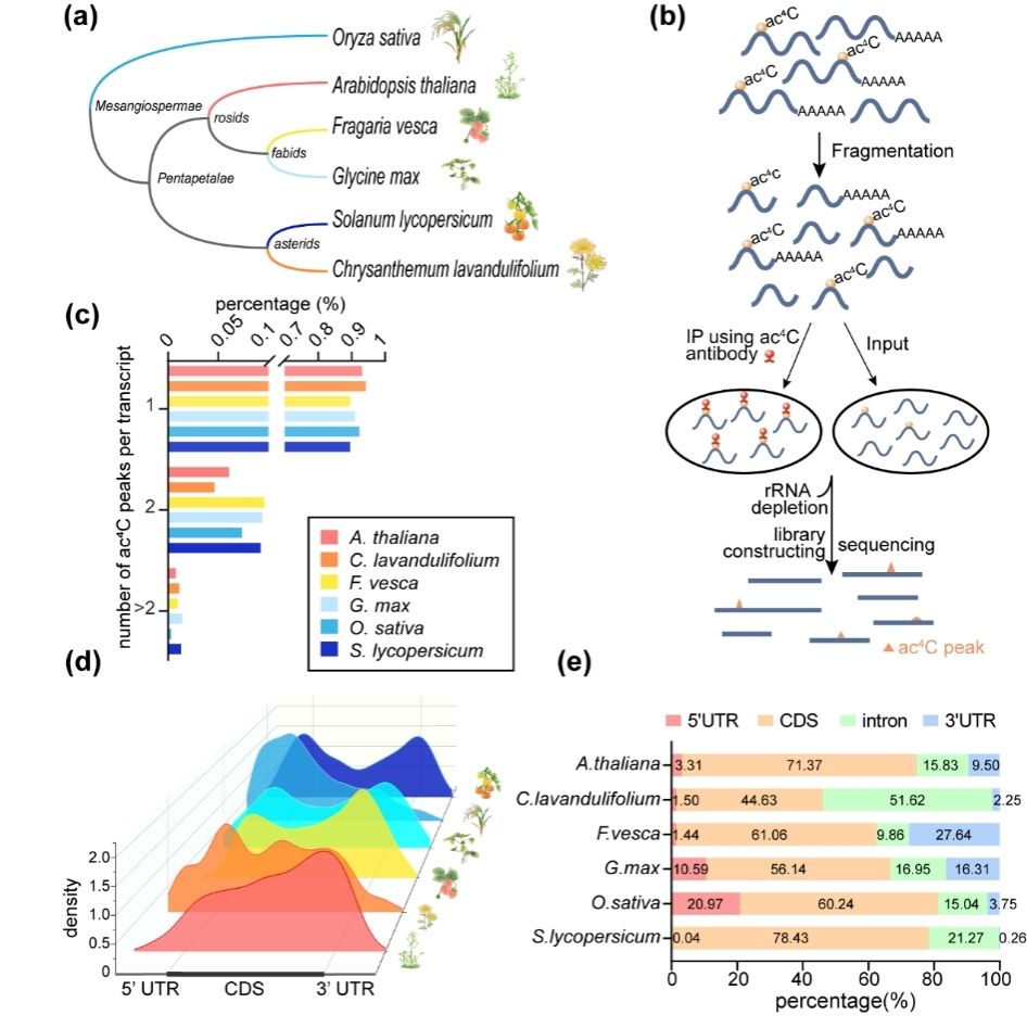 图1. 六种高等植物中ac4C修饰位点的全转录本图谱绘制
