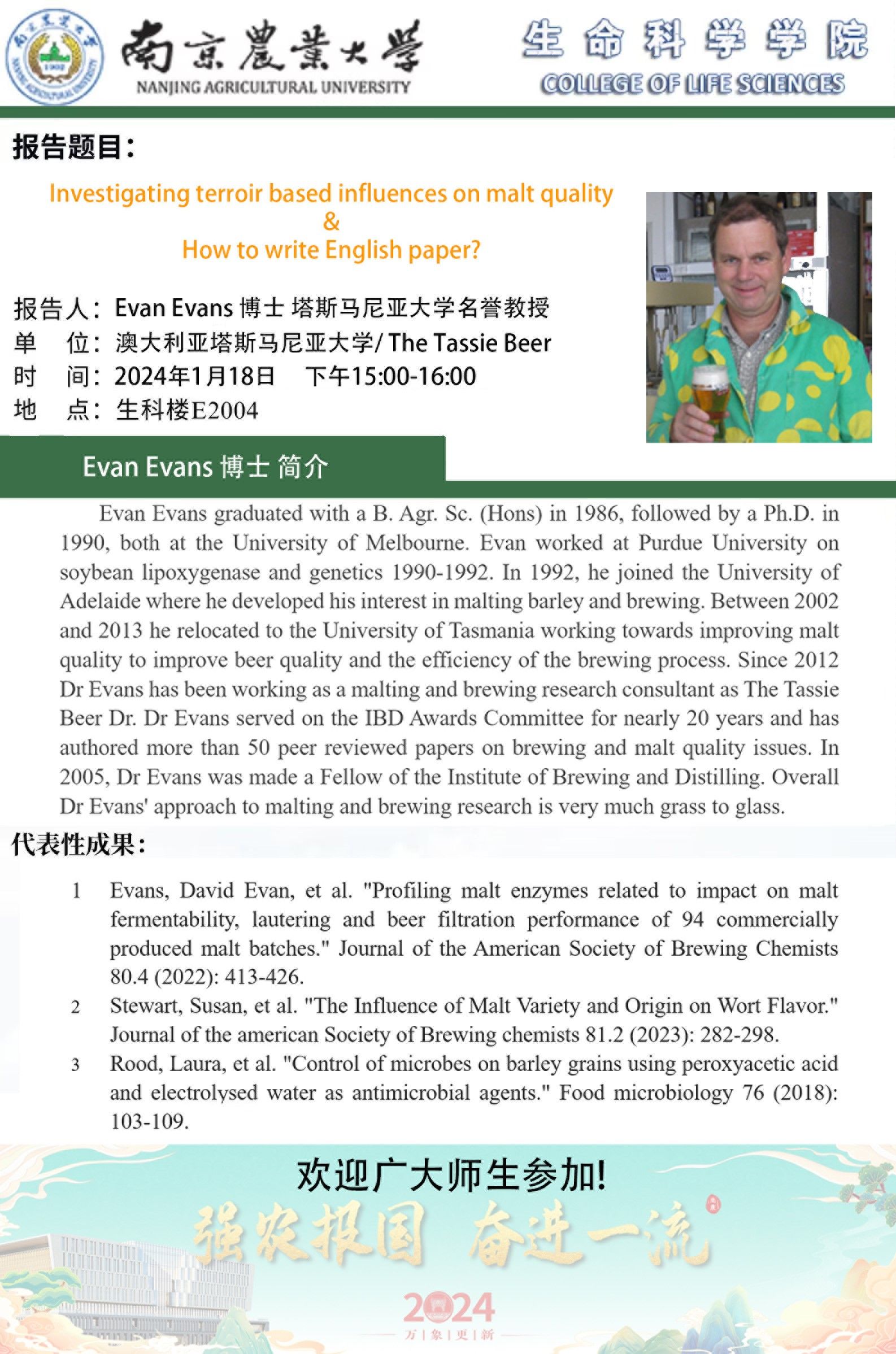生命科学学院学术报告-Investigating terroir based influences on malt quality & How to write English paper?