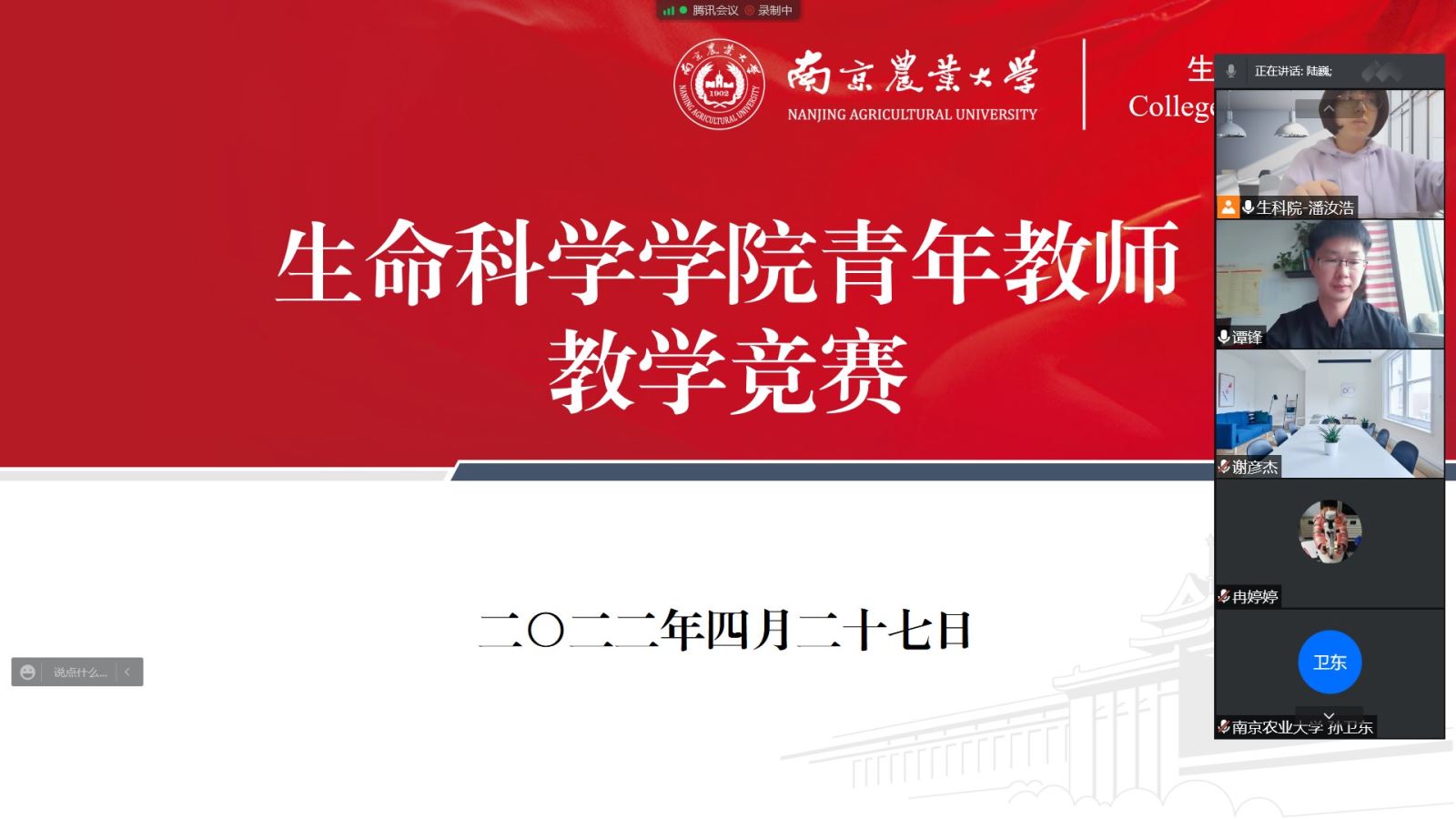 4月27日生命科学学院举行了2022年度青年教师教学竞赛。参赛教师和评委专家相聚云端,通过线上“传帮带”的方式,提高青年教师教学能力,牢记传承教师使命。
