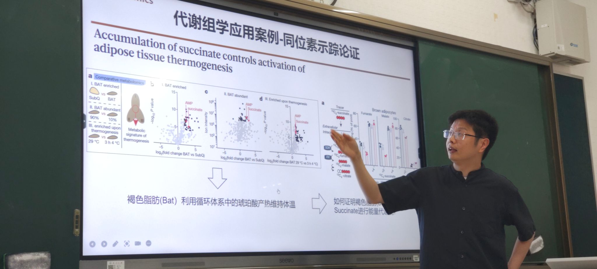 杨立峰研究员以《稳定同位素示踪揭示代谢异质性》为题,深入探讨了代谢组学的各个方面,包括非靶向和靶向代谢组学的实现及其在生物体内的应用。他详细阐述了如何利用稳定同位素示踪法来解决营养物质代谢去向的问题、追溯代谢产物的来源以及定量活体内的代谢速率。