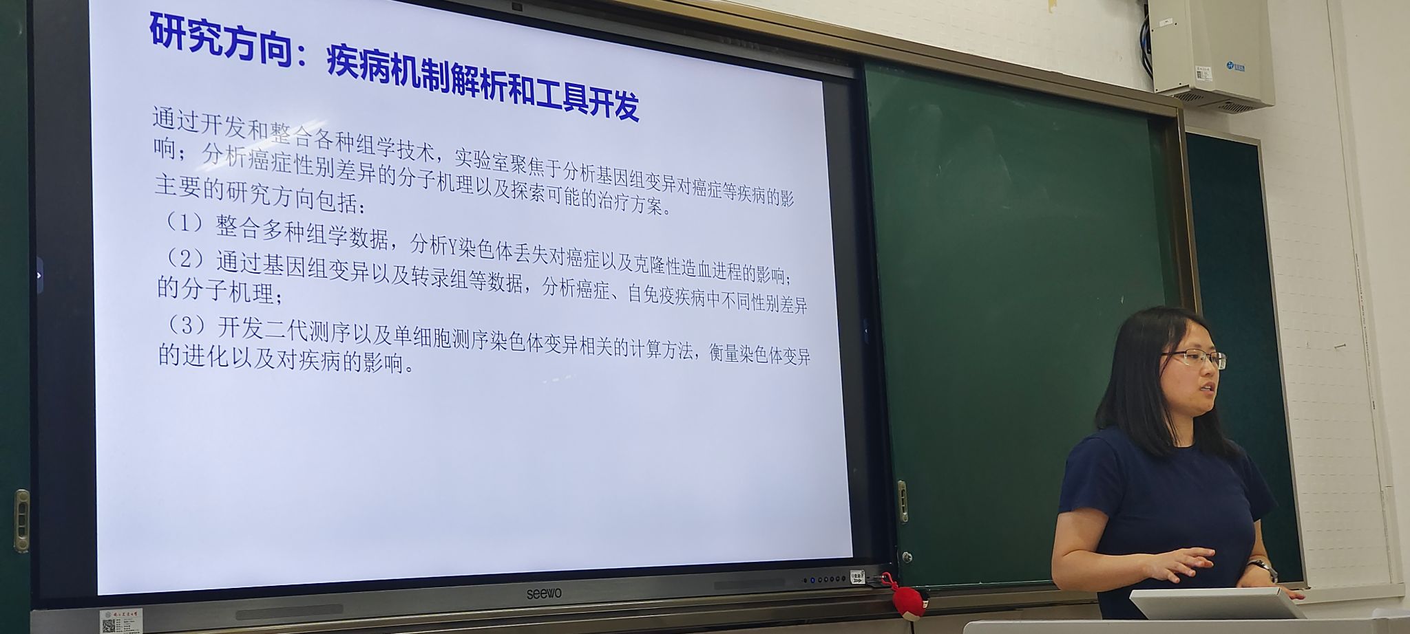 齐美芳研究员的讲座题目为《体细胞变异在疾病中的研究进展》,她重点介绍了DNA测序技术在研究体细胞变异中的应用,以及这些变异如何与自免疫疾病及神经特异性疾病相关联。特别是她对Y染色体的丢失及其潜在的影响进行了详细的讨论,提出了当前研究中的挑战与未来的方向。